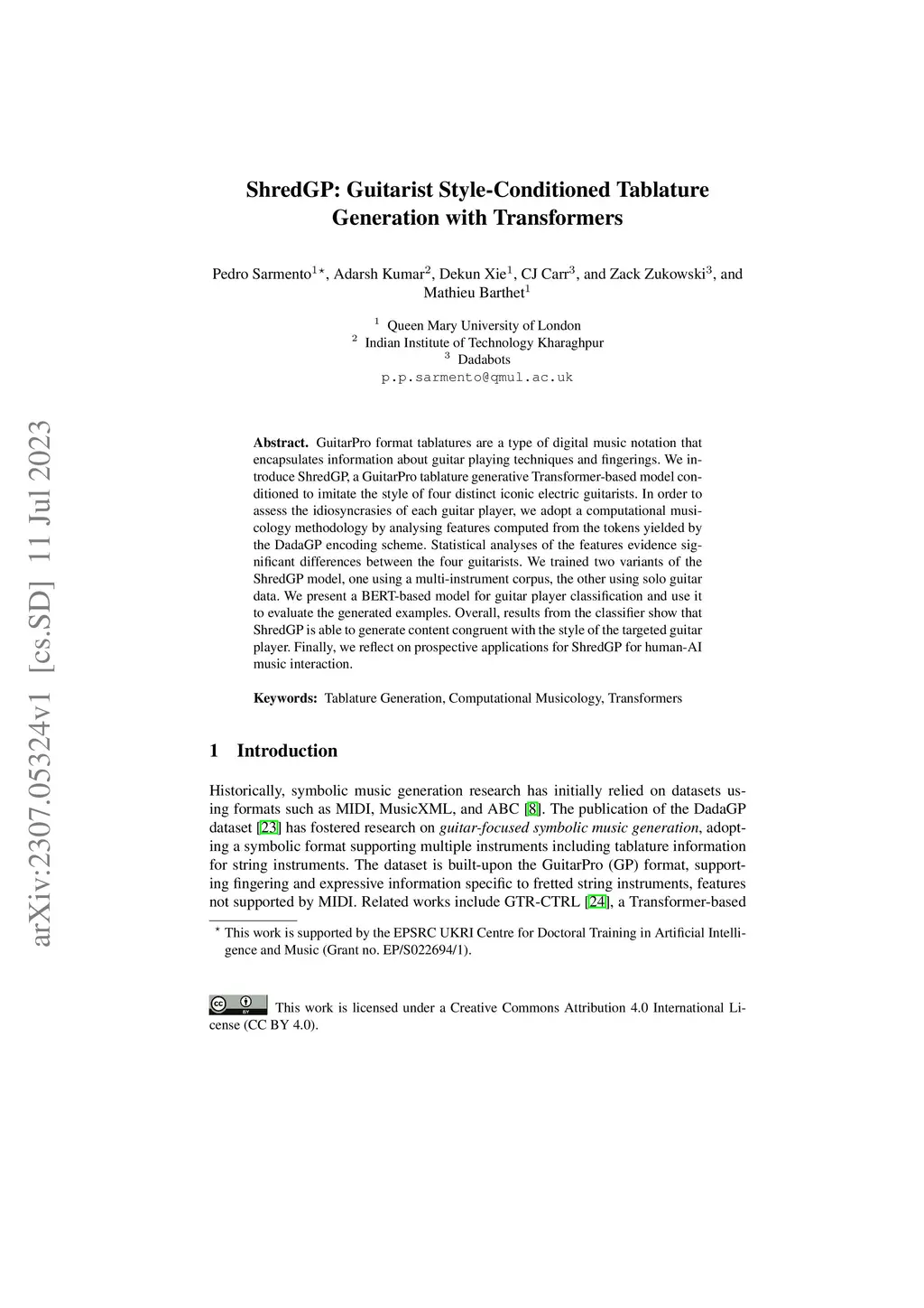 ShredGP: Guitarist Style-Conditioned Tablature Generation