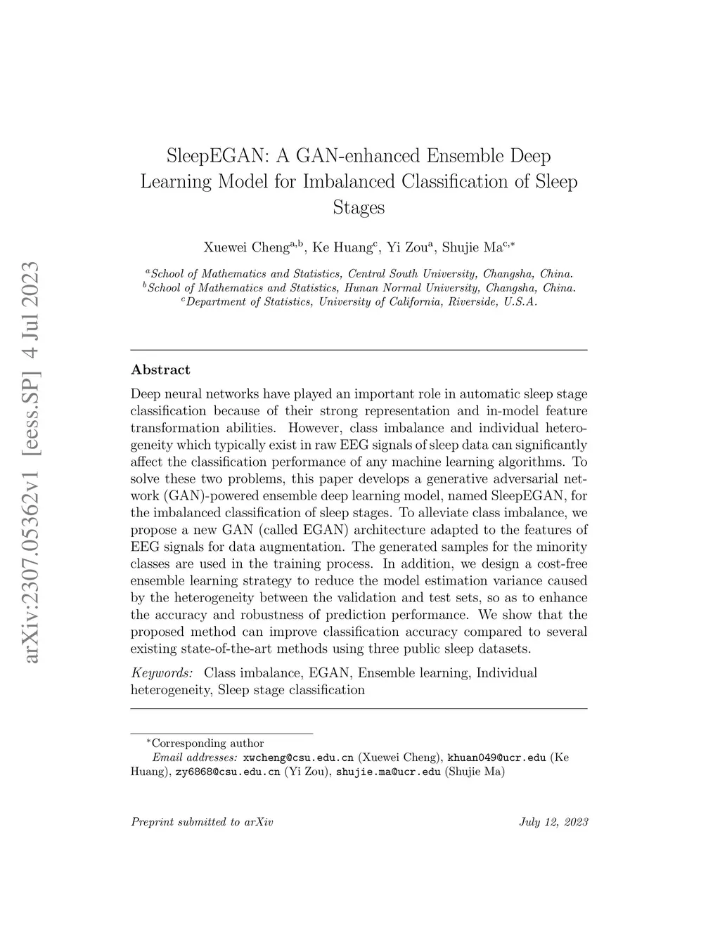 SleepEGAN: A GAN-enhanced Ensemble Deep Learning Model for Imbalanced