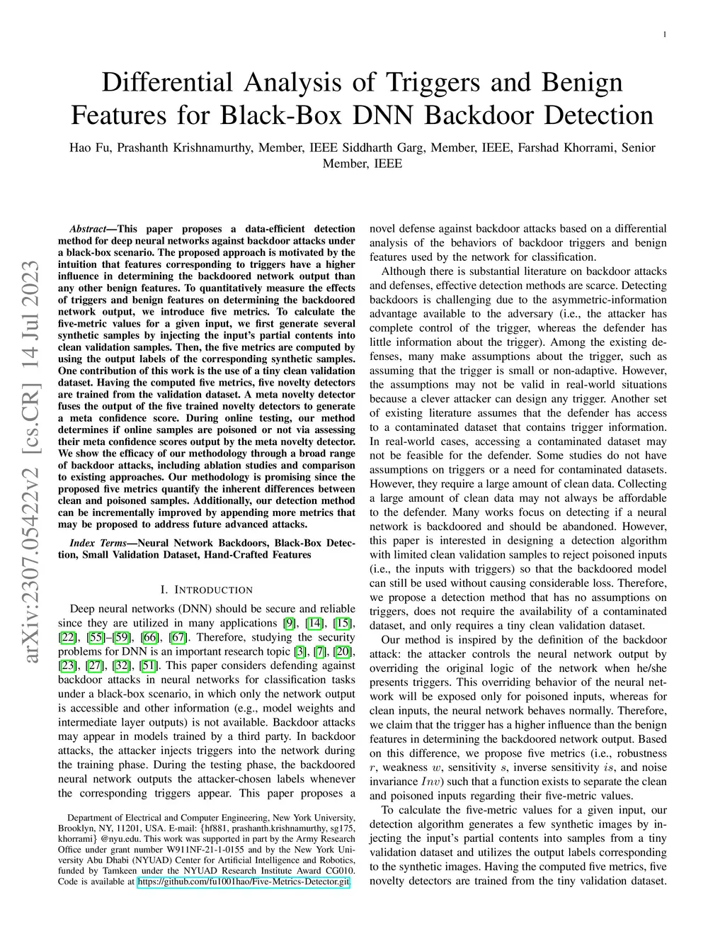 Differential Analysis of Triggers and Benign Features for Black-Box DNN