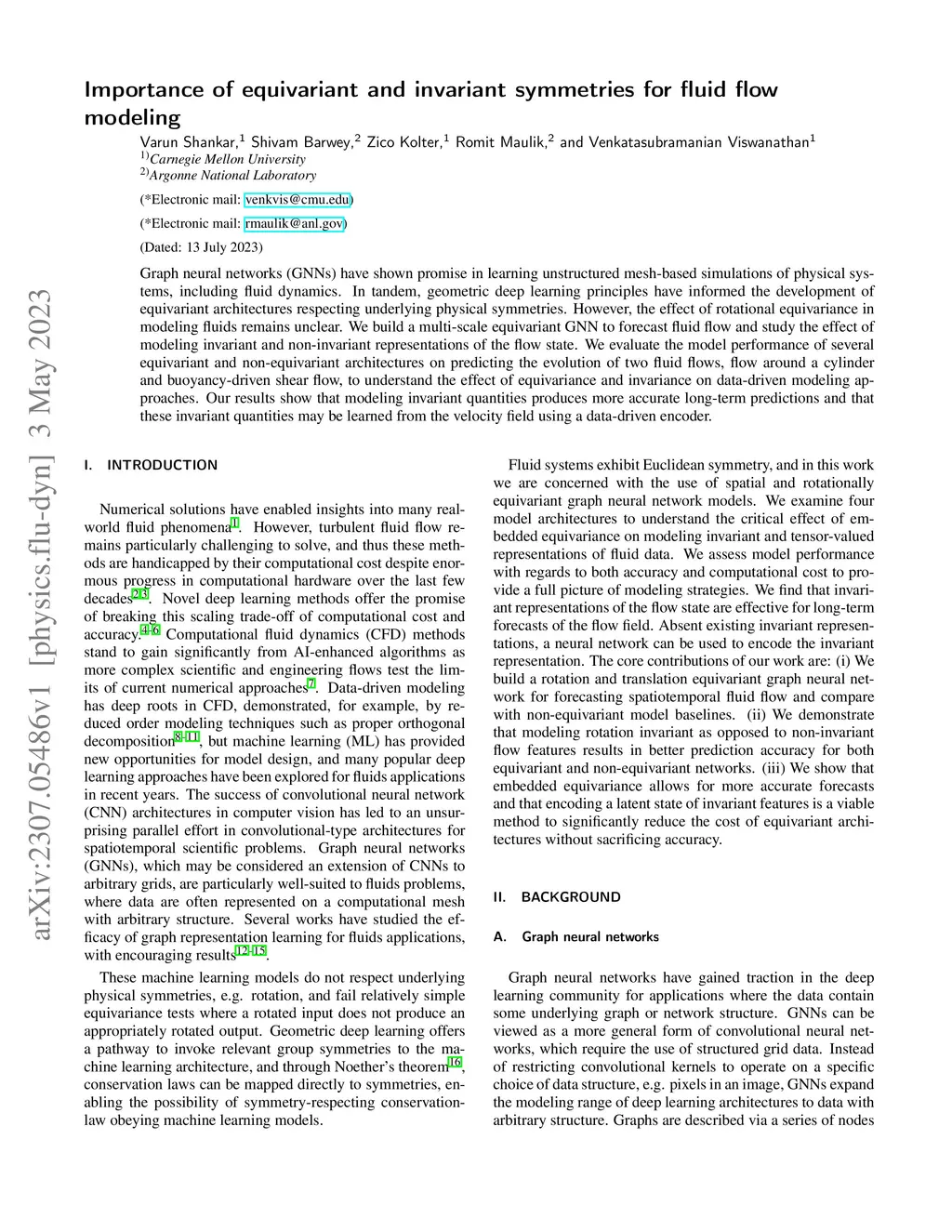 Graph neural networks (GNNs) have shown promise in learning unstructured mesh-based simulations of physical systems, including fluid dynamics. In tandem, geometric deep learning principles have informed the development of equivariant architectures respecting underlying physical symmetries. However, the effect of rotational equivariance in modeling fluids remains unclear. We build a multi-scale equivariant GNN to forecast fluid flow and study the effect of modeling invariant and non-invariant representations of the flow state. We evaluate the model performance of several equivariant and non-equivariant architectures on predicting the evolution of two fluid flows, flow around a cylinder and buoyancy-driven shear flow, to understand the effect of equivariance and invariance on data-driven modeling approaches. Our results show that modeling invariant quantities produces more accurate long-term predictions and that these invariant quantities may be learned from the velocity field using a data-driven encoder.