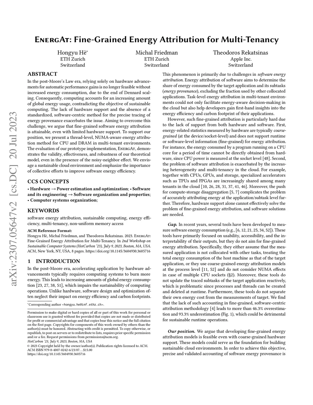 In the post-Moore's Law era, relying solely on hardware advancements for automatic performance gains is no longer feasible without increased energy consumption, due to the end of Dennard scaling. Consequently, computing accounts for an increasing amount of global energy usage, contradicting the objective of sustainable computing. The lack of hardware support and the absence of a standardized, software-centric method for the precise tracing of energy provenance exacerbates the issue. Aiming to overcome this challenge, we argue that fine-grained software energy attribution is attainable, even with limited hardware support. To support our position, we present a thread-level, NUMA-aware energy attribution method for CPU and DRAM in multi-tenant environments. The evaluation of our prototype implementation, EnergAt, demonstrates the validity, effectiveness, and robustness of our theoretical model, even in the presence of the noisy-neighbor effect. We envisage a sustainable cloud environment and emphasize the importance of collective efforts to improve software energy efficiency.