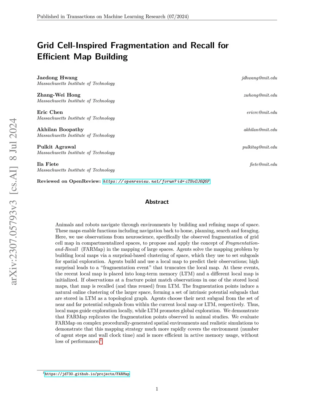 Grid Cell-Inspired Fragmentation and Recall for Efficient Map Building