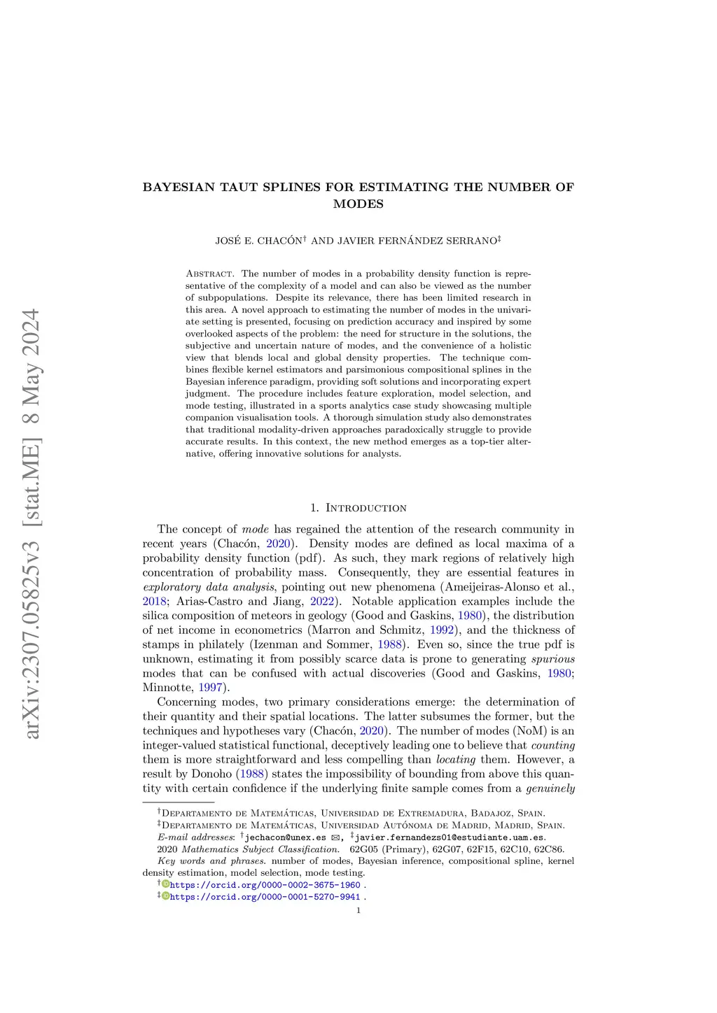 The number of modes in a probability density function is representative of the model's complexity and can also be viewed as the number of existing subpopulations. Despite its relevance, little research has been devoted to its estimation. Focusing on the univariate setting, we propose a novel approach targeting prediction accuracy inspired by some overlooked aspects of the problem. We argue for the need for structure in the solutions, the subjective and uncertain nature of modes, and the convenience of a holistic view blending global and local density properties. Our method builds upon a combination of flexible kernel estimators and parsimonious compositional splines. Feature exploration, model selection and mode testing are implemented in the Bayesian inference paradigm, providing soft solutions and allowing to incorporate expert judgement in the process. The usefulness of our proposal is illustrated through a case study in sports analytics, showcasing multiple companion visualisation tools. A thorough simulation study demonstrates that traditional modality-driven approaches paradoxically struggle to provide accurate results. In this context, our method emerges as a top-tier alternative offering innovative solutions for analysts.