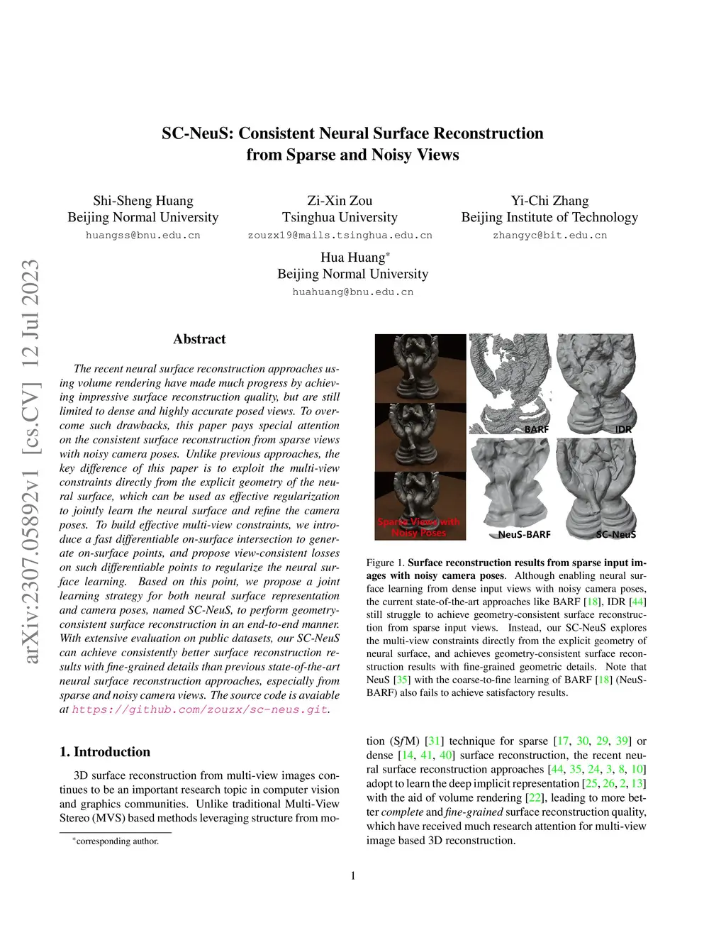 SC-NeuS: Consistent Neural Surface Reconstruction from Sparse and Noisy