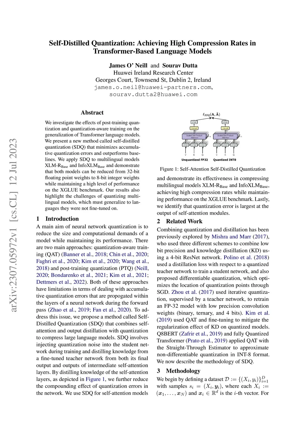 We investigate the effects of post-training quantization and quantization-aware training on the generalization of Transformer language models. We present a new method called self-distilled quantization (SDQ) that minimizes accumulative quantization errors and outperforms baselines. We apply SDQ to multilingual models XLM-R-Base and InfoXLM-Base and demonstrate that both models can be reduced from 32-bit floating point weights to 8-bit integer weights while maintaining a high level of performance on the XGLUE benchmark. Our results also highlight the challenges of quantizing multilingual models, which must generalize to languages they were not fine-tuned on.