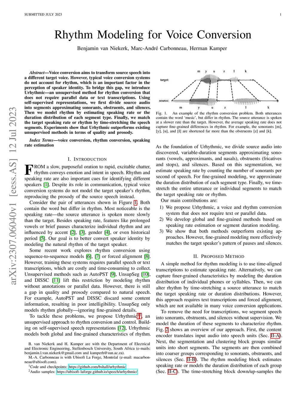 Rhythm Modeling for Voice Conversion