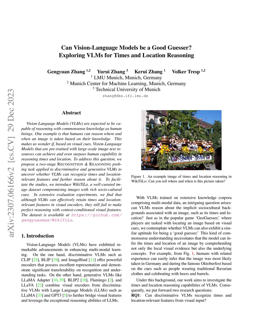 Vision-Language Models (VLMs) are expected to be capable of reasoning with commonsense knowledge as human beings. One example is that humans can reason where and when an image is taken based on their knowledge. This makes us wonder if, based on visual cues, Vision-Language Models that are pre-trained with large-scale image-text resources can achieve and even outperform human's capability in reasoning times and location. To address this question, we propose a two-stage \recognition\space and \reasoning\space probing task, applied to discriminative and generative VLMs to uncover whether VLMs can recognize times and location-relevant features and further reason about it. To facilitate the investigation, we introduce WikiTiLo, a well-curated image dataset compromising images with rich socio-cultural cues. In the extensive experimental studies, we find that although VLMs can effectively retain relevant features in visual encoders, they still fail to make perfect reasoning. We will release our dataset and codes to facilitate future studies.