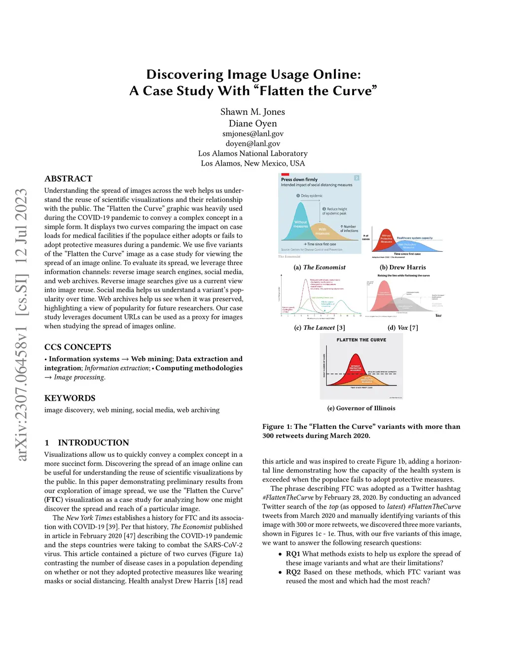 Understanding the spread of images across the web helps us understand the reuse of scientific visualizations and their relationship with the public. The "Flatten the Curve" graphic was heavily used during the COVID-19 pandemic to convey a complex concept in a simple form. It displays two curves comparing the impact on case loads for medical facilities if the populace either adopts or fails to adopt protective measures during a pandemic. We use five variants of the "Flatten the Curve" image as a case study for viewing the spread of an image online. To evaluate its spread, we leverage three information channels: reverse image search engines, social media, and web archives. Reverse image searches give us a current view into image reuse. Social media helps us understand a variant's popularity over time. Web archives help us see when it was preserved, highlighting a view of popularity for future researchers. Our case study leverages document URLs can be used as a proxy for images when studying the spread of images online.