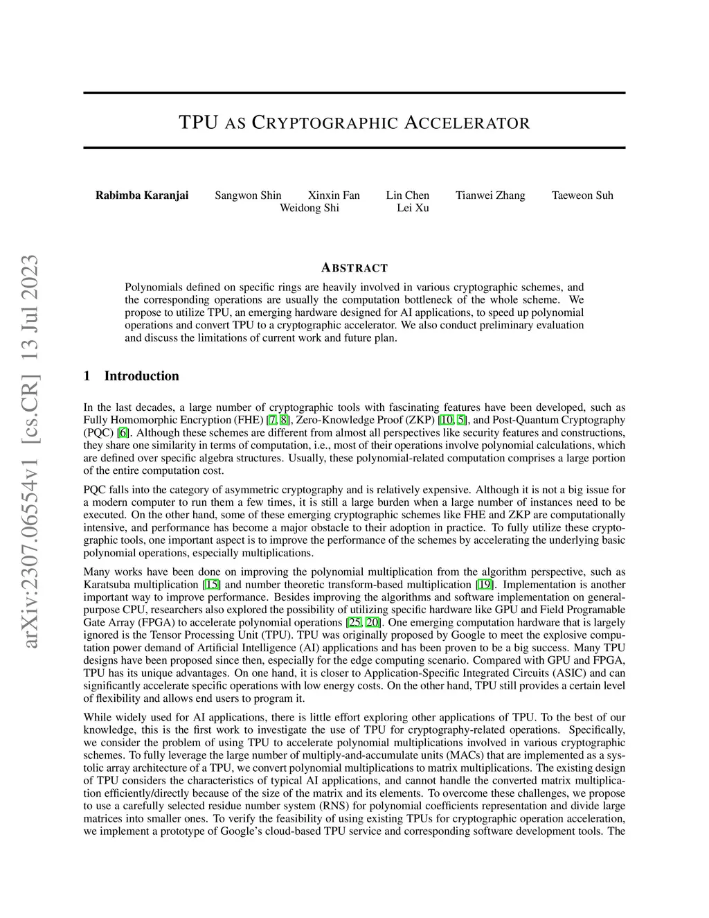 TPU as Cryptographic Accelerator
