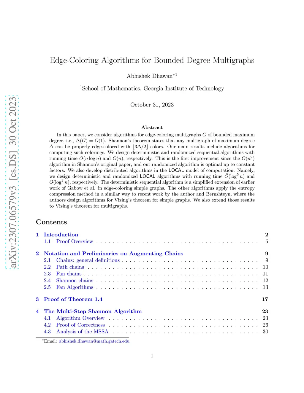 In this paper, we consider algorithms for edge-coloring multigraphs of bounded maximum degree, i.e., . Shannon's theorem states that any multigraph of maximum degree can be properly edge-colored with colors. Our main results include algorithms for computing such colorings. We design deterministic and randomized sequential algorithms with running time and , respectively. This is the first improvement since the algorithm in Shannon's original paper, and our randomized algorithm is optimal up to constant factors. We also develop distributed algorithms in the model of computation. Namely, we design deterministic and randomized algorithms with running time and , respectively. The deterministic sequential algorithm is a simplified extension of earlier work of Gabow et al. in edge-coloring simple graphs. The other algorithms apply the entropy compression method in a similar way to recent work by the author and Bernshteyn, where the authors design algorithms for Vizing's theorem for simple graphs. We also extend those results to Vizing's theorem for multigraphs.