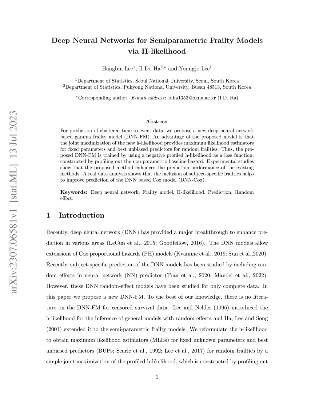 Deep Neural Networks for Semiparametric Frailty Models via H-likelihood