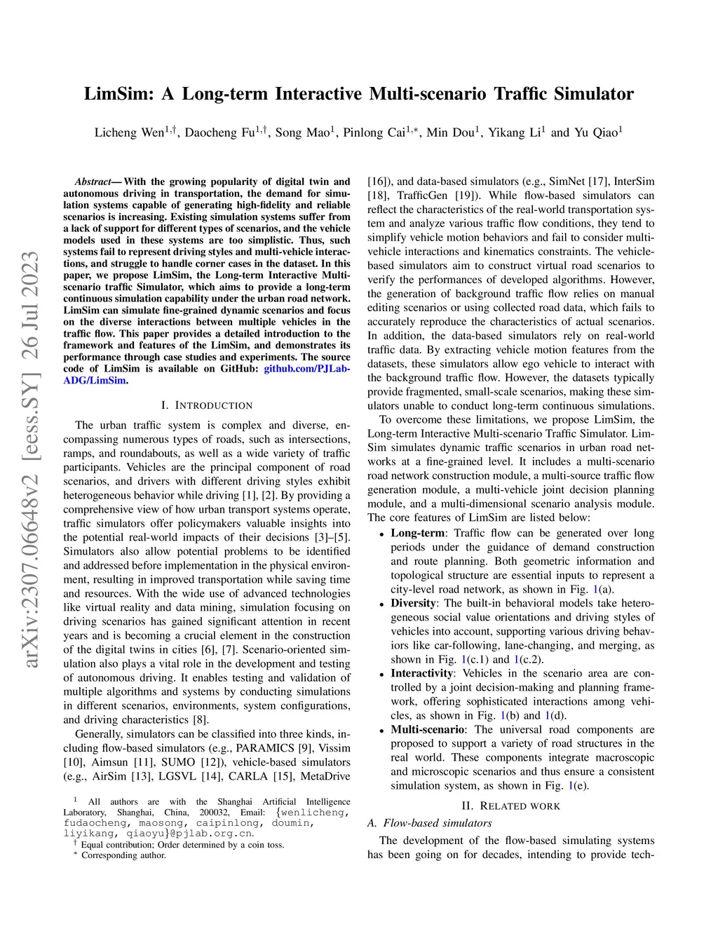 With the growing popularity of digital twin and autonomous driving in transportation, the demand for simulation systems capable of generating high-fidelity and reliable scenarios is increasing. Existing simulation systems suffer from a lack of support for different types of scenarios, and the vehicle models used in these systems are too simplistic. Thus, such systems fail to represent driving styles and multi-vehicle interactions, and struggle to handle corner cases in the dataset. In this paper, we propose LimSim, the Long-term Interactive Multi-scenario traffic Simulator, which aims to provide a long-term continuous simulation capability under the urban road network. LimSim can simulate fine-grained dynamic scenarios and focus on the diverse interactions between multiple vehicles in the traffic flow. This paper provides a detailed introduction to the framework and features of the LimSim, and demonstrates its performance through case studies and experiments. LimSim is now open source on GitHub: https://www.github.com/PJLab-ADG/LimSim .