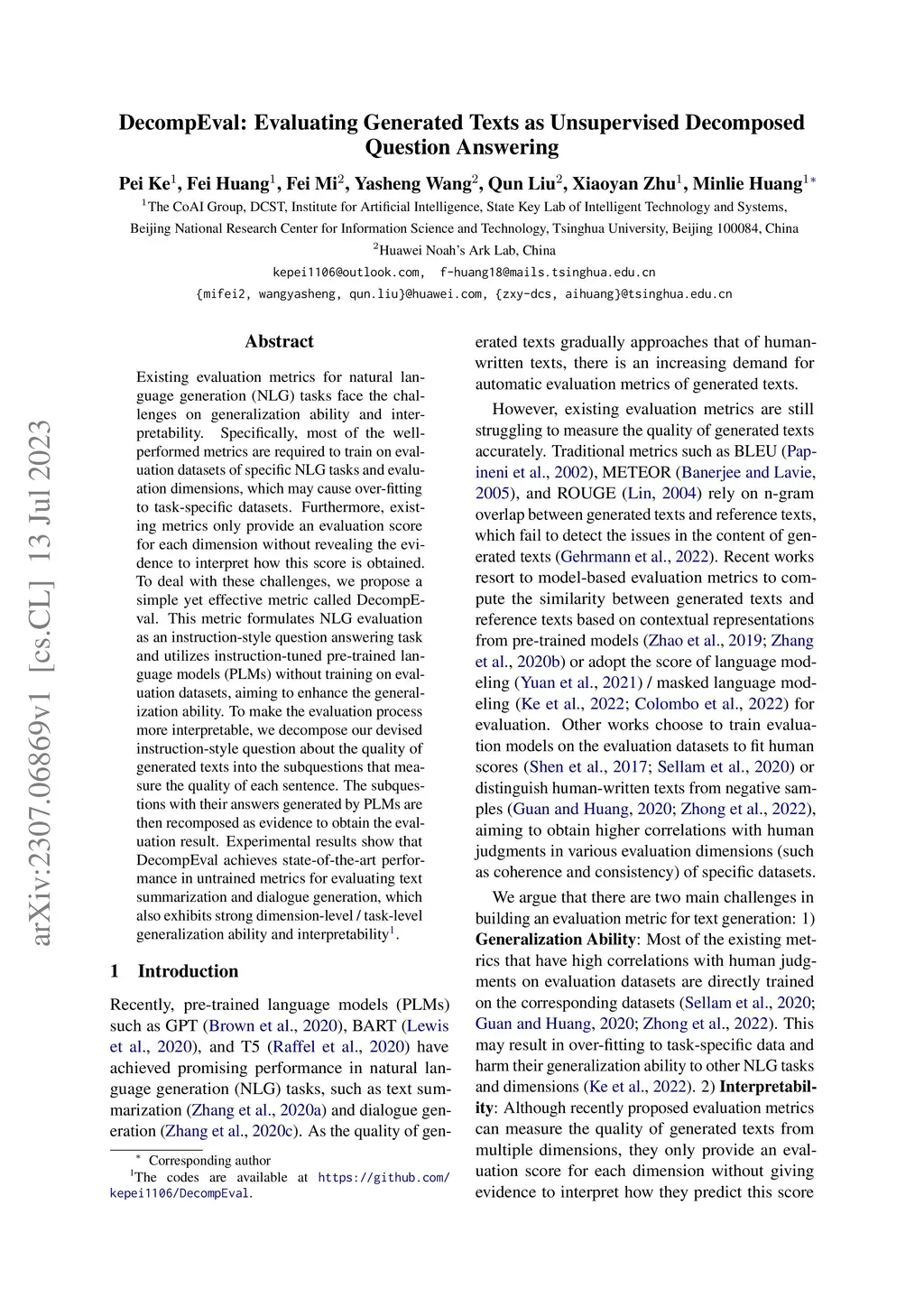 DecompEval: Evaluating Generated Texts as Unsupervised Decomposed