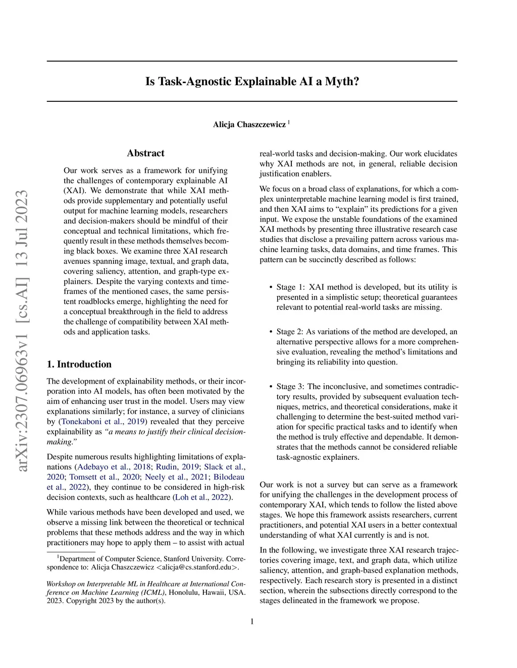 Our work serves as a framework for unifying the challenges of contemporary explainable AI (XAI). We demonstrate that while XAI methods provide supplementary and potentially useful output for machine learning models, researchers and decision-makers should be mindful of their conceptual and technical limitations, which frequently result in these methods themselves becoming black boxes. We examine three XAI research avenues spanning image, textual, and graph data, covering saliency, attention, and graph-type explainers. Despite the varying contexts and timeframes of the mentioned cases, the same persistent roadblocks emerge, highlighting the need for a conceptual breakthrough in the field to address the challenge of compatibility between XAI methods and application tasks.