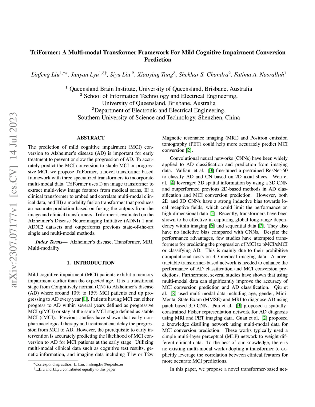 TriFormer: A Multi-modal Transformer Framework For Mild Cognitive