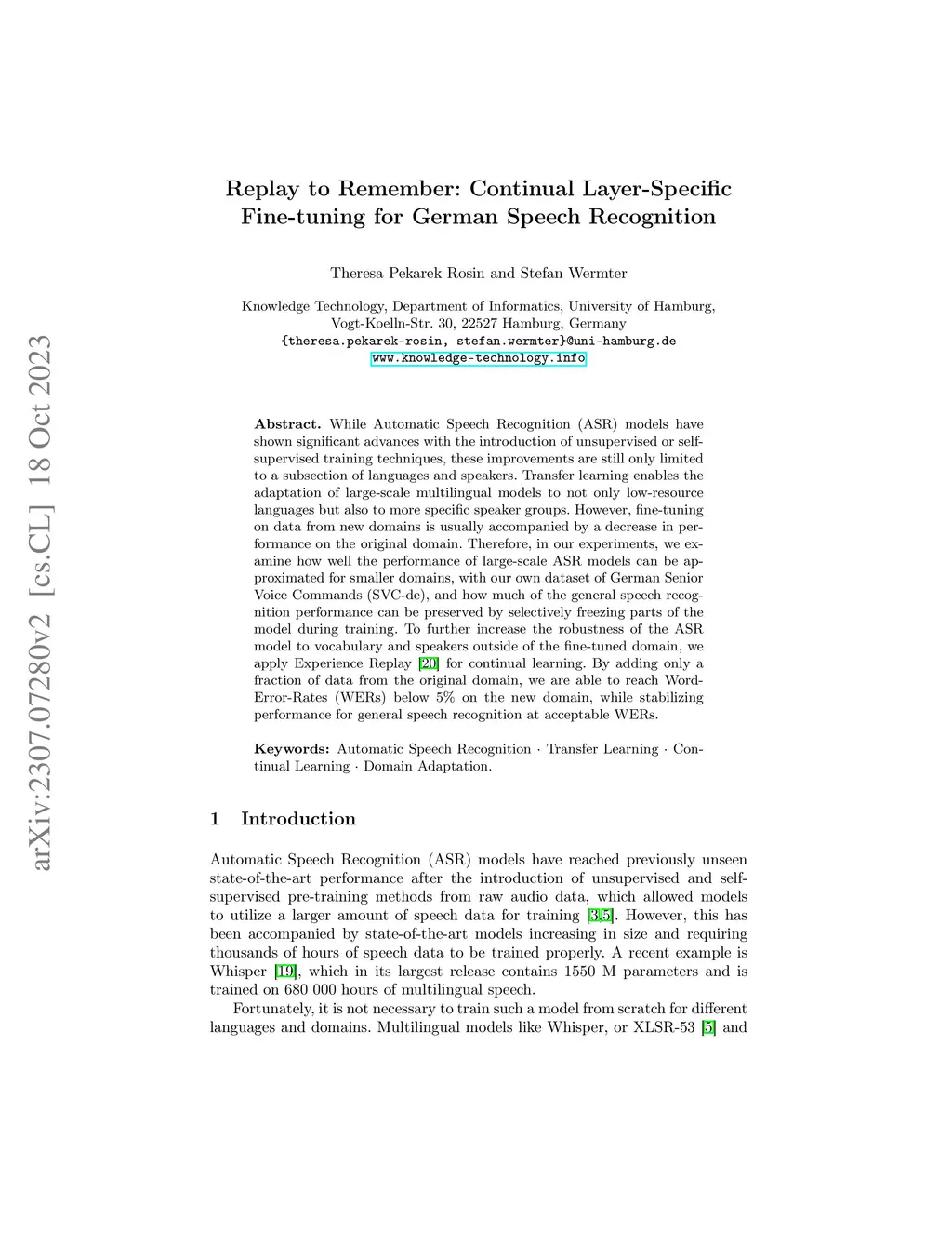 Replay to Remember: Continual Layer-Specific Fine-tuning for German Speech Recognition