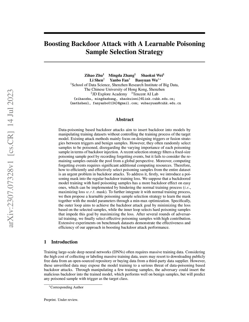 Boosting Backdoor Attack with A Learnable Poisoning Sample Selection