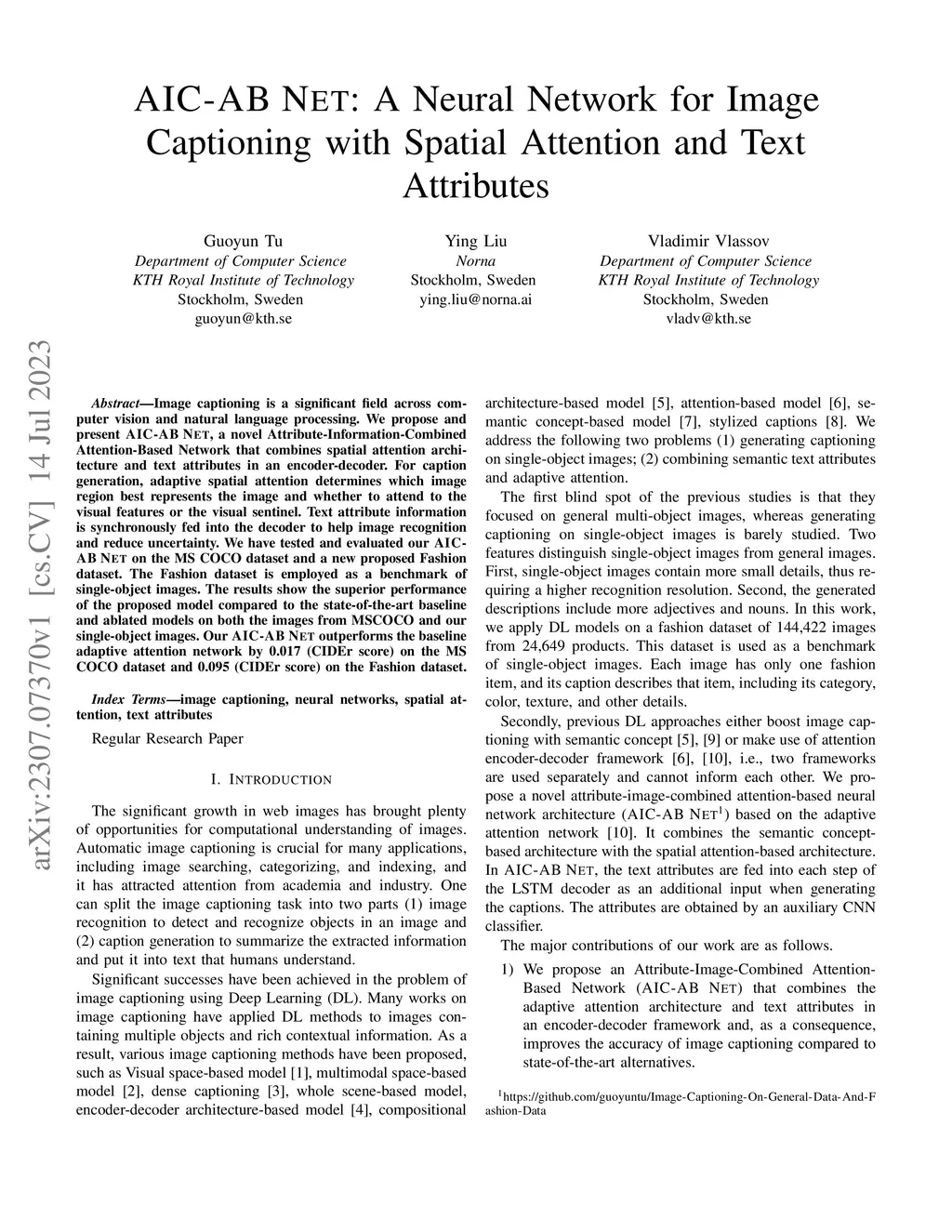 AIC-AB NET: A Neural Network for Image Captioning with Spatial Attention