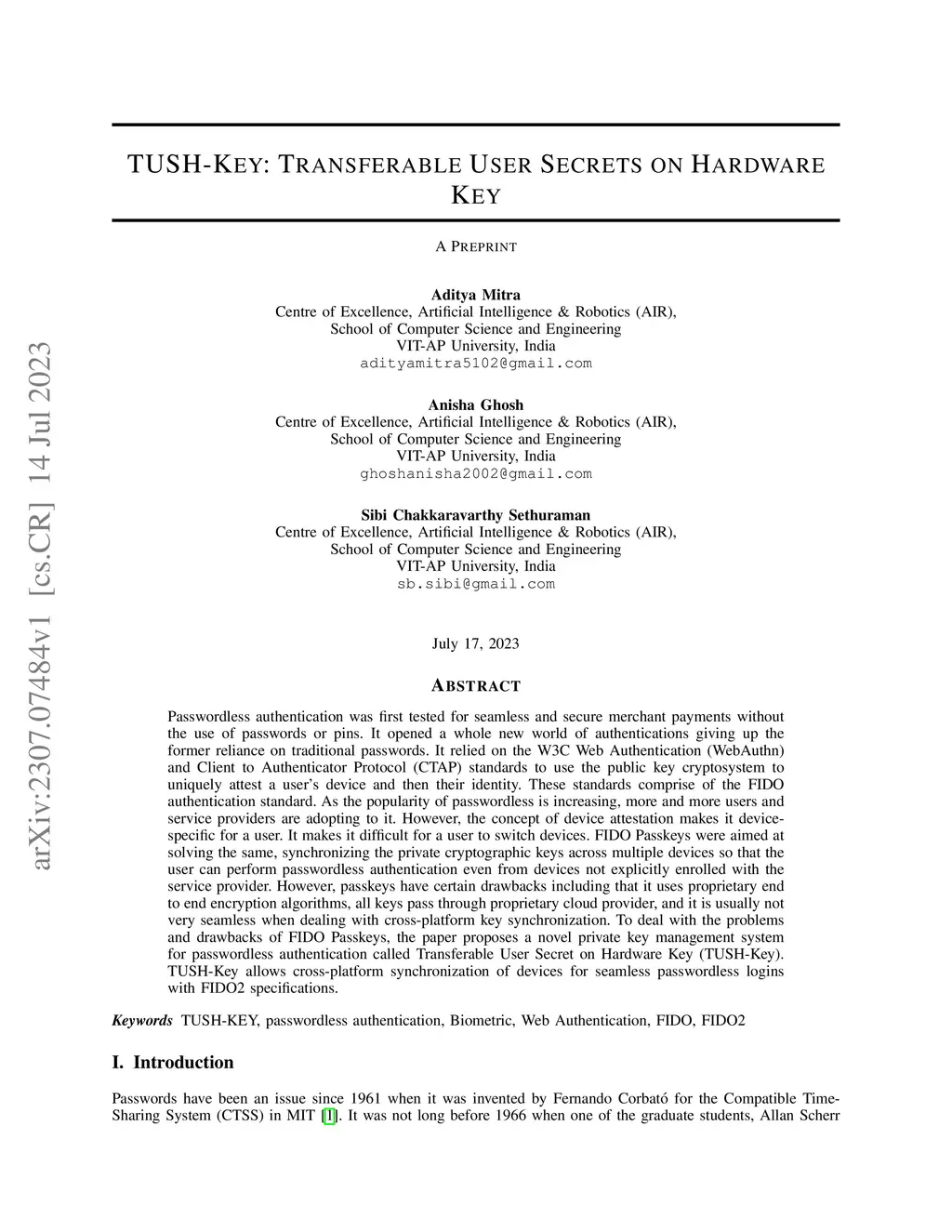 TUSH-Key: Transferable User Secrets on Hardware Key