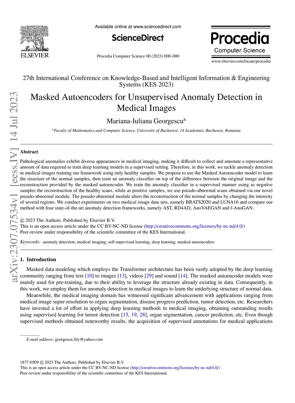 Pathological anomalies exhibit diverse appearances in medical imaging, making it difficult to collect and annotate a representative amount of data required to train deep learning models in a supervised setting. Therefore, in this work, we tackle anomaly detection in medical images training our framework using only healthy samples. We propose to use the Masked Autoencoder model to learn the structure of the normal samples, then train an anomaly classifier on top of the difference between the original image and the reconstruction provided by the masked autoencoder. We train the anomaly classifier in a supervised manner using as negative samples the reconstruction of the healthy scans, while as positive samples, we use pseudo-abnormal scans obtained via our novel pseudo-abnormal module. The pseudo-abnormal module alters the reconstruction of the normal samples by changing the intensity of several regions. We conduct experiments on two medical image data sets, namely BRATS2020 and LUNA16 and compare our method with four state-of-the-art anomaly detection frameworks, namely AST, RD4AD, AnoVAEGAN and f-AnoGAN.