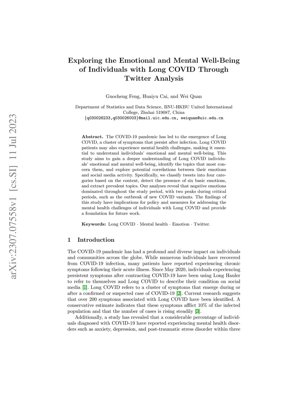 Exploring the Emotional and Mental Well-Being of Individuals with Long