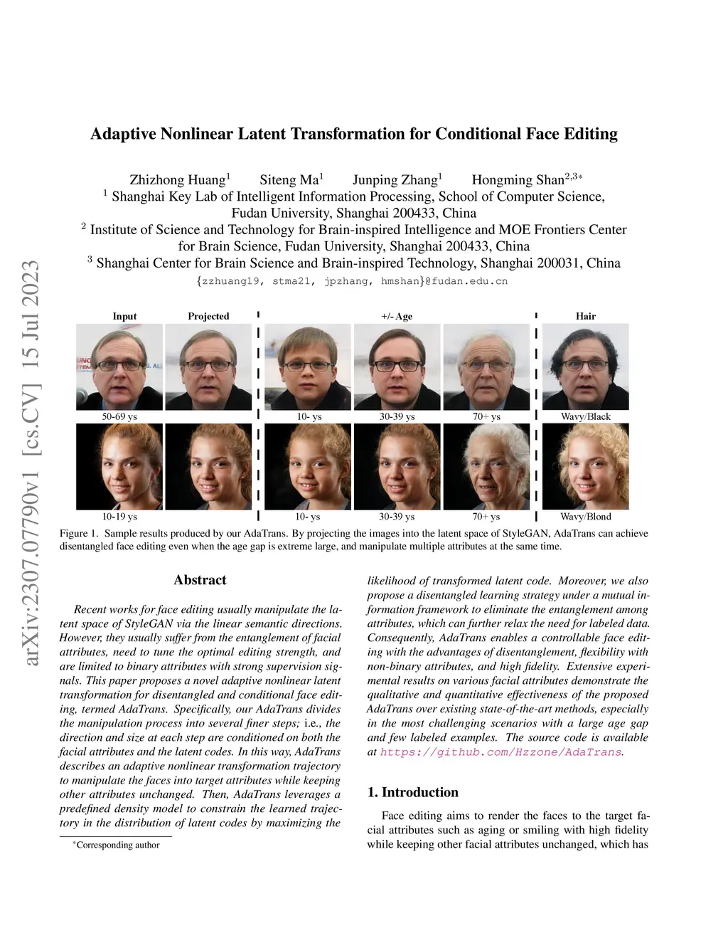 Adaptive Nonlinear Latent Transformation for Conditional Face Editing