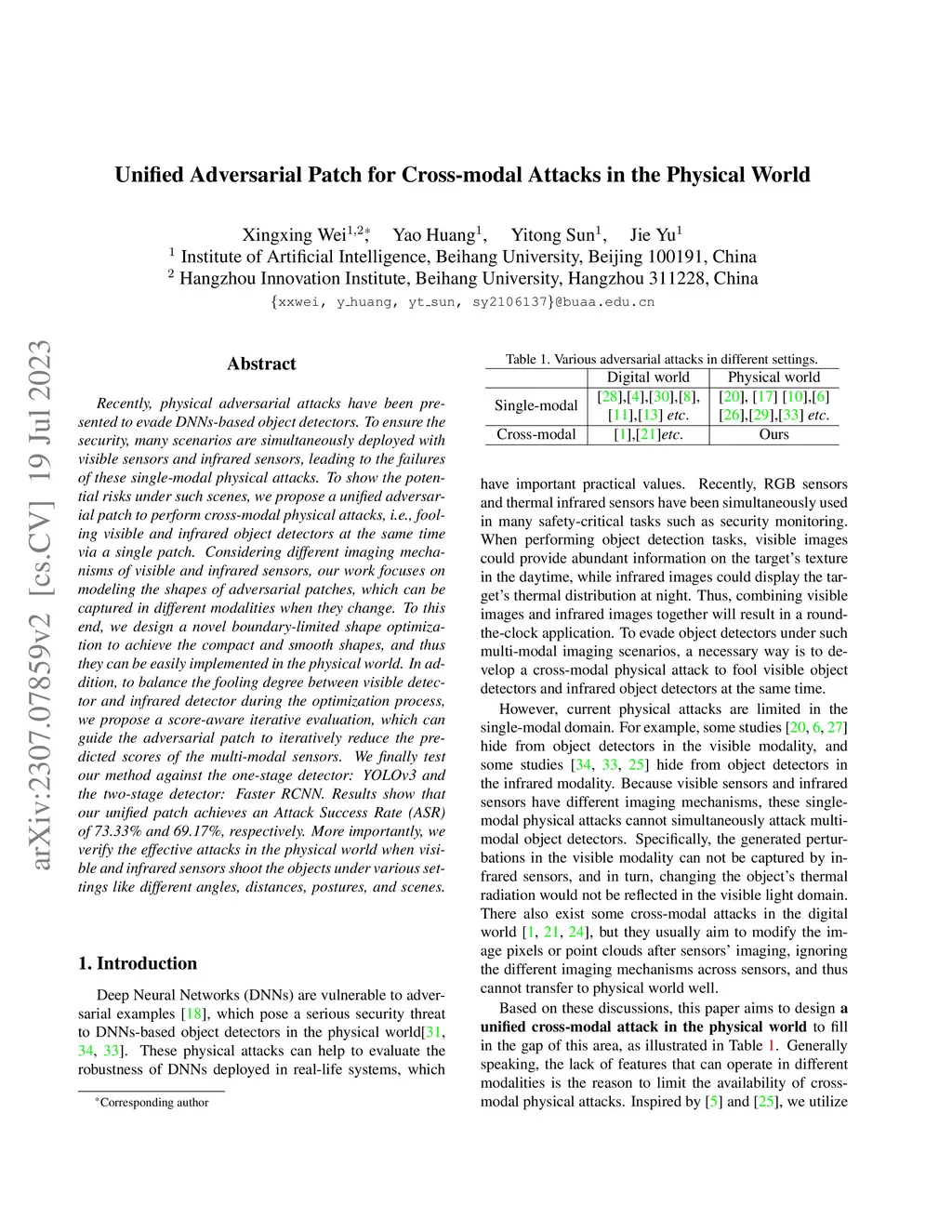 Unified Adversarial Patch for Cross-modal Attacks in the Physical World