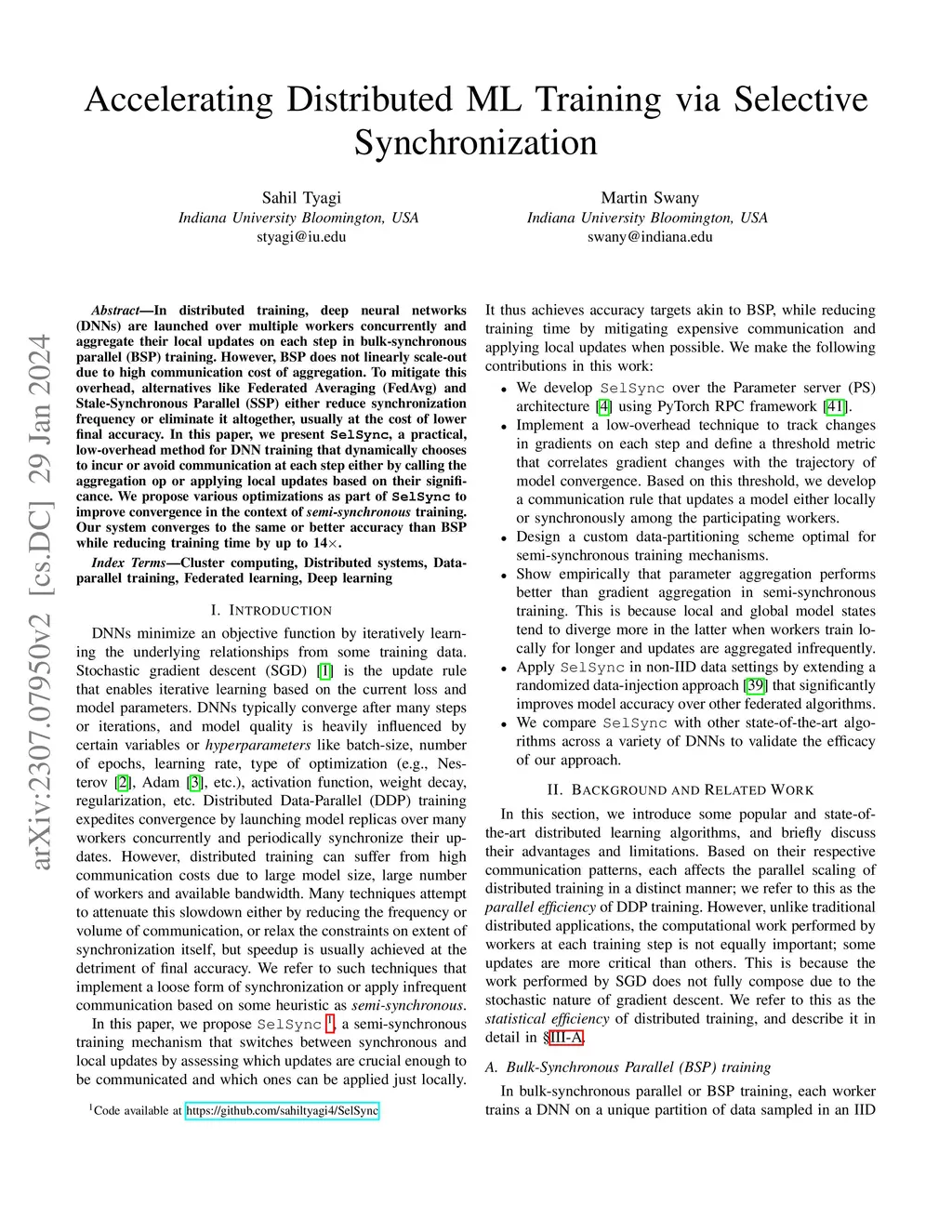 Accelerating Distributed ML Training via Selective Synchronization