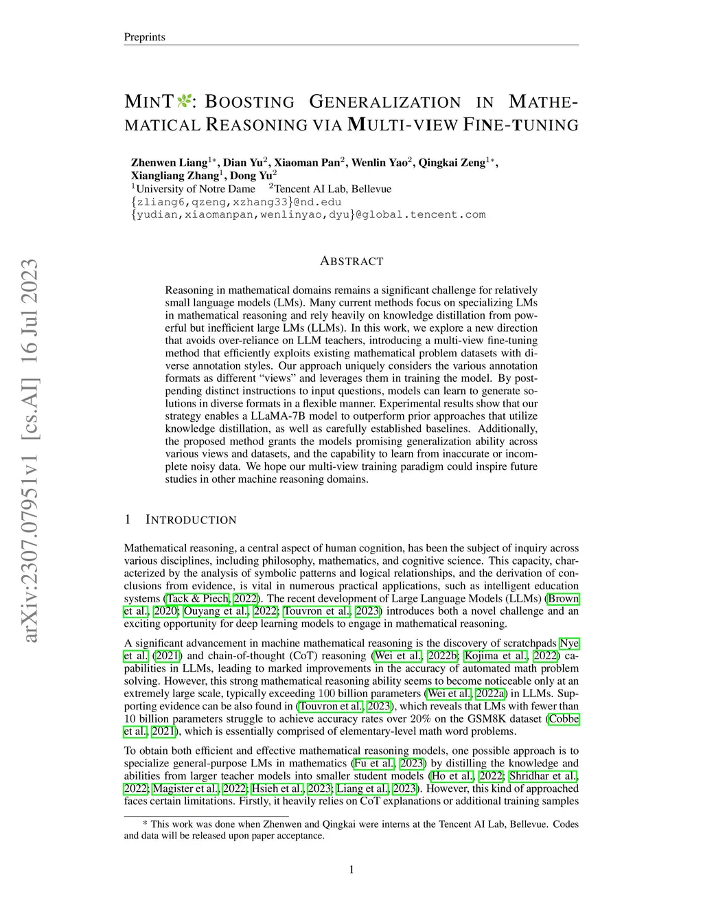 MinT: Boosting Generalization in Mathematical Reasoning via Multi-View