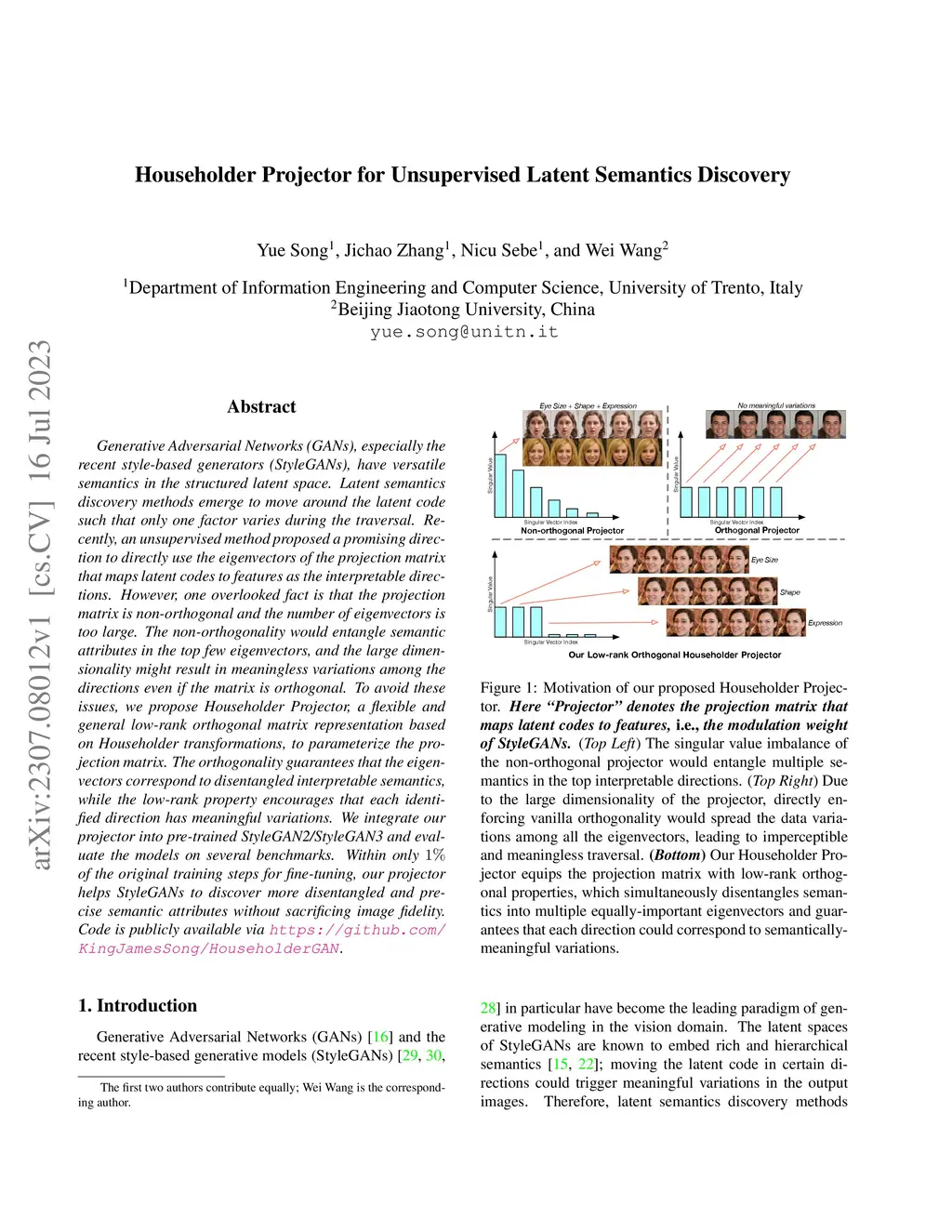Householder Projector for Unsupervised Latent Semantics Discovery