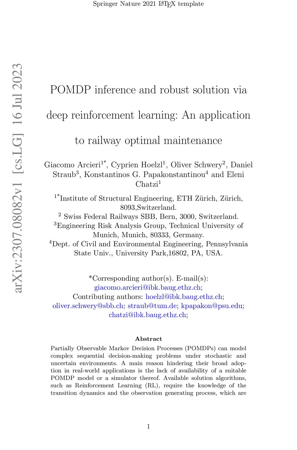 Partially Observable Markov Decision Processes (POMDPs) can model complex sequential decision-making problems under stochastic and uncertain environments. A main reason hindering their broad adoption in real-world applications is the lack of availability of a suitable POMDP model or a simulator thereof. Available solution algorithms, such as Reinforcement Learning (RL), require the knowledge of the transition dynamics and the observation generating process, which are often unknown and non-trivial to infer. In this work, we propose a combined framework for inference and robust solution of POMDPs via deep RL. First, all transition and observation model parameters are jointly inferred via Markov Chain Monte Carlo sampling of a hidden Markov model, which is conditioned on actions, in order to recover full posterior distributions from the available data. The POMDP with uncertain parameters is then solved via deep RL techniques with the parameter distributions incorporated into the solution via domain randomization, in order to develop solutions that are robust to model uncertainty. As a further contribution, we compare the use of transformers and long short-term memory networks, which constitute model-free RL solutions, with a model-based/model-free hybrid approach. We apply these methods to the real-world problem of optimal maintenance planning for railway assets.