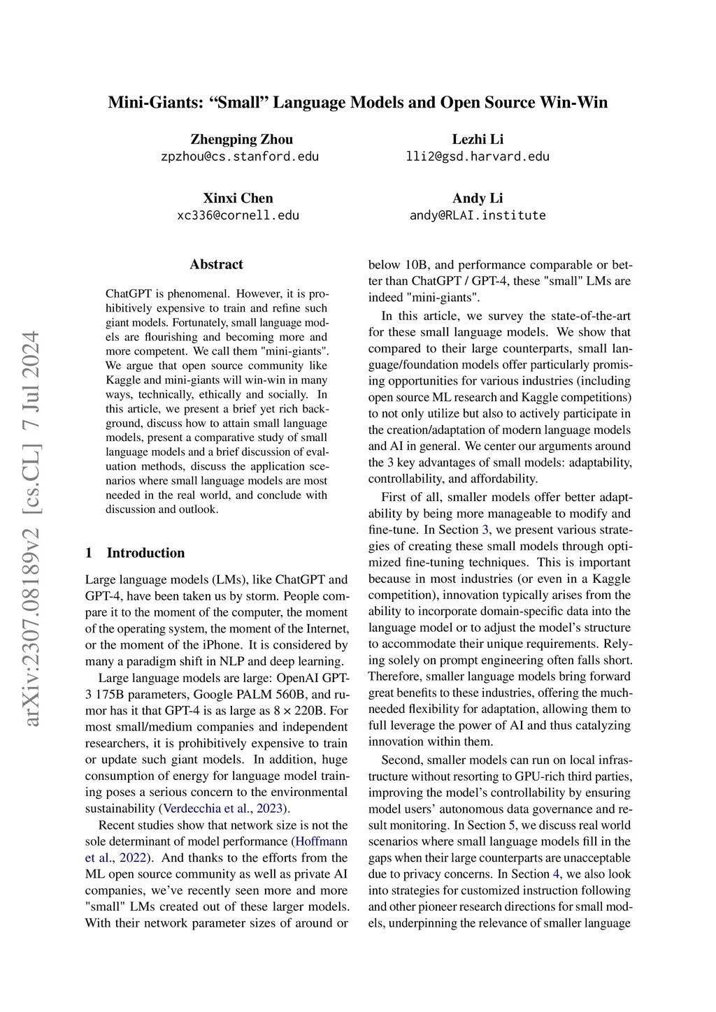 Mini-Giants: "Small" Language Models and Open Source Win-Win