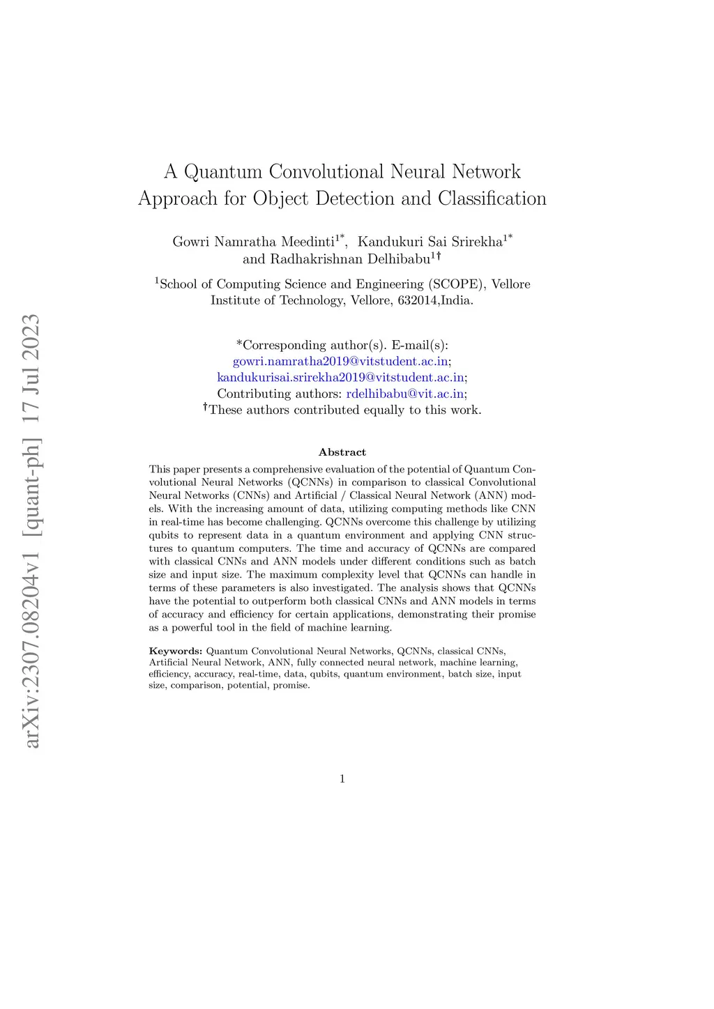 A Quantum Convolutional Neural Network Approach for Object Detection and