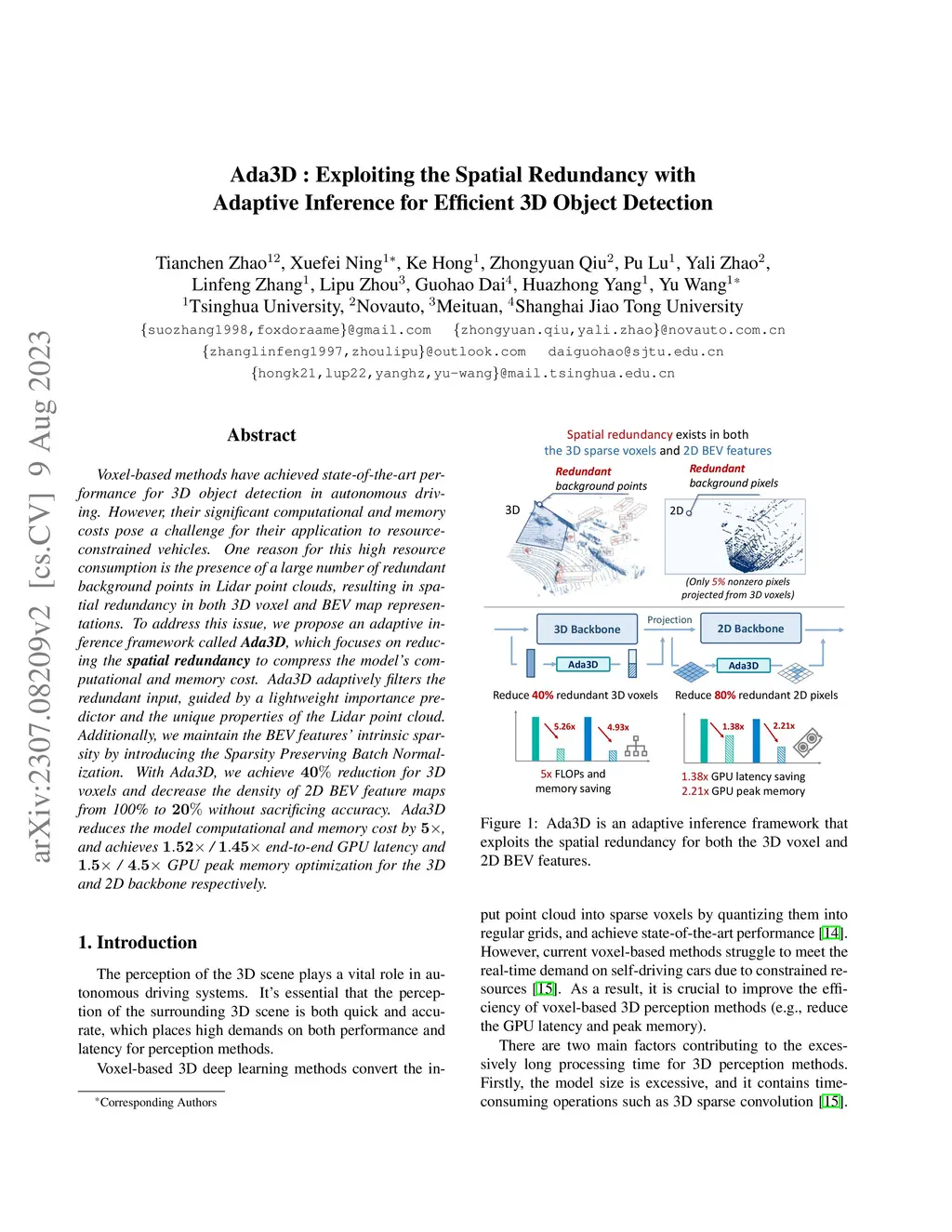 Ada3D : Exploiting the Spatial Redundancy with Adaptive Inference for