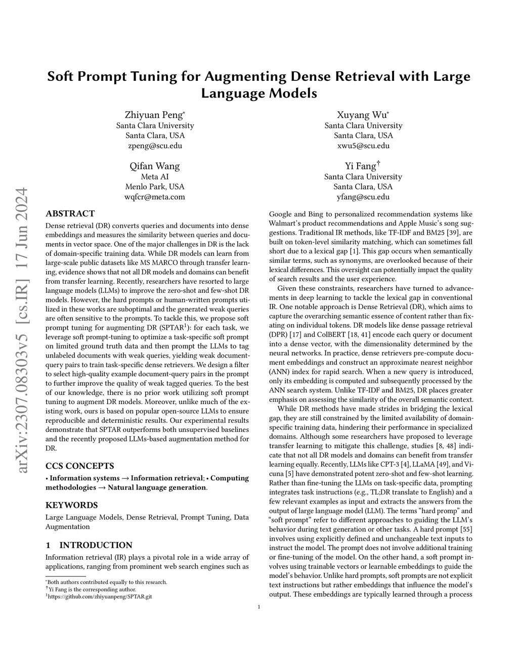 Soft Prompt Tuning for Augmenting Dense Retrieval with Large Language