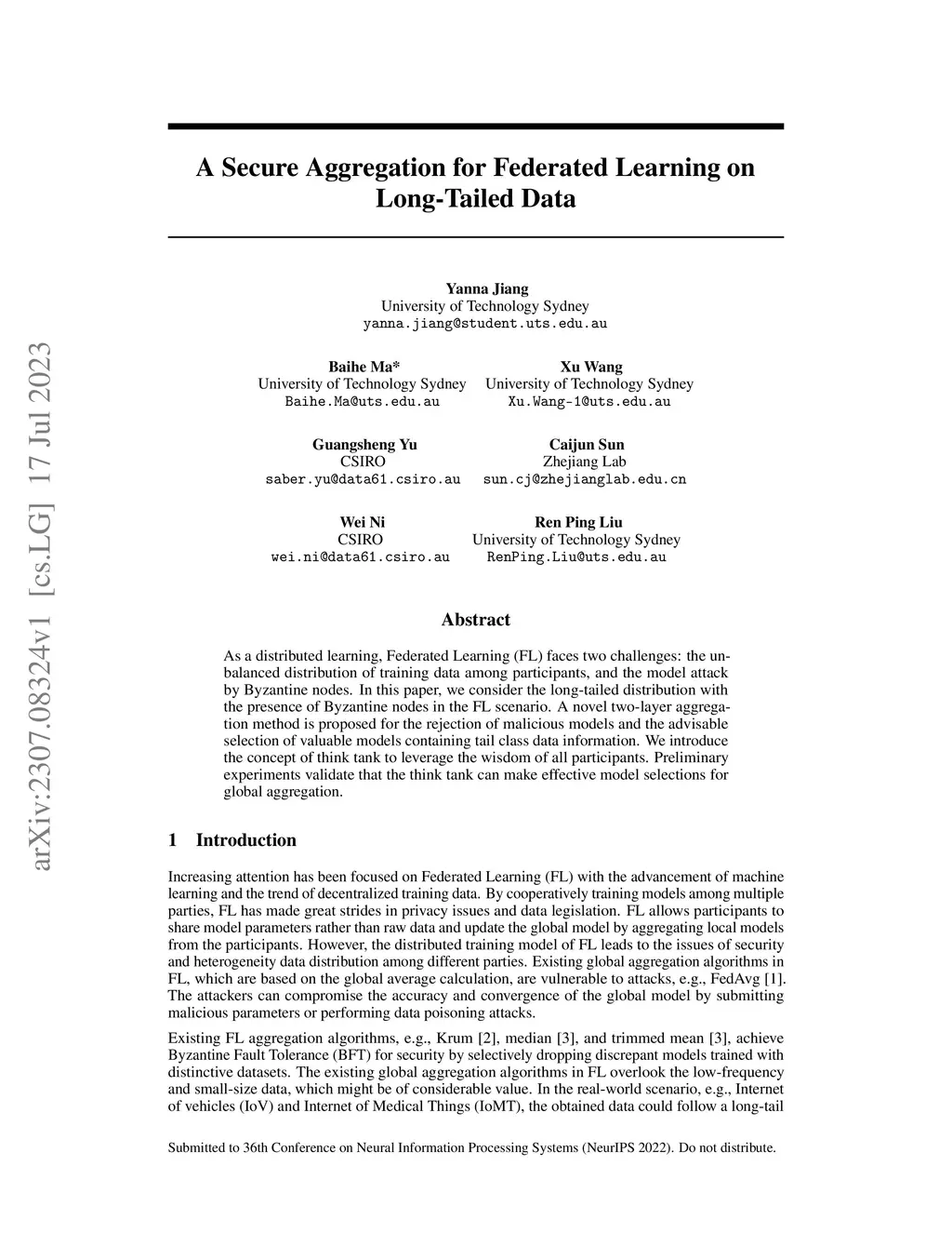 A Secure Aggregation for Federated Learning on Long-Tailed Data