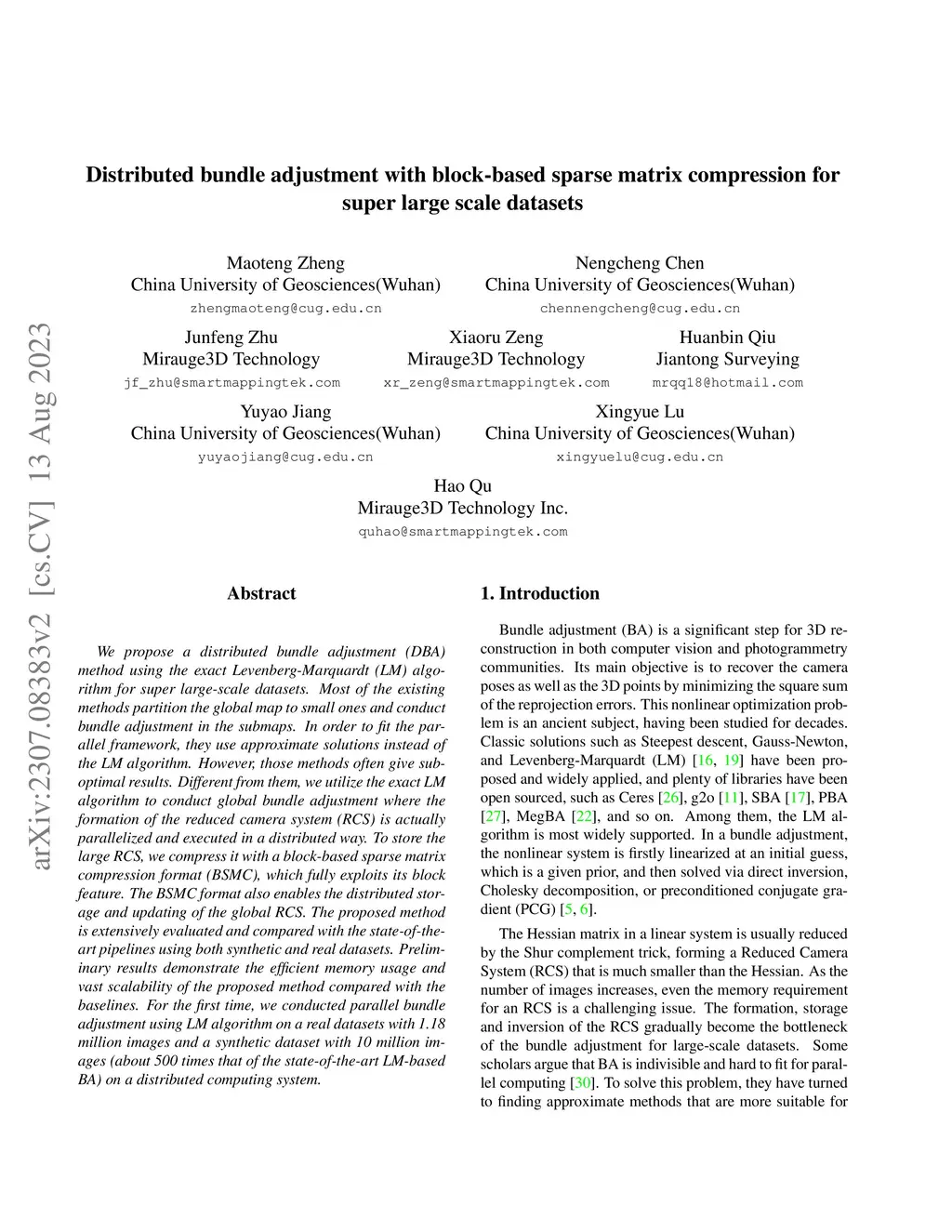 Distributed bundle adjustment with block-based sparse matrix compression