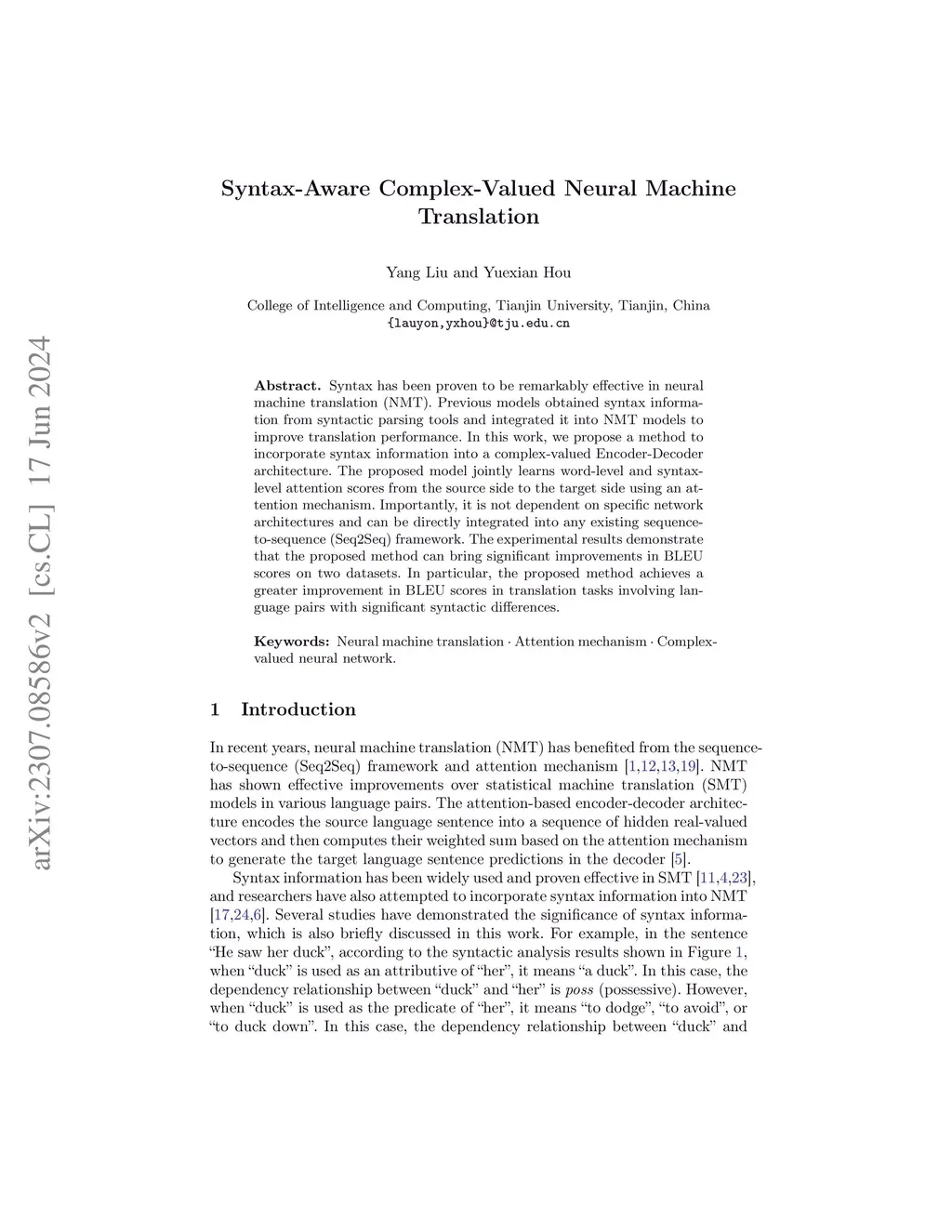 Syntax-Aware Complex-Valued Neural Machine Translation