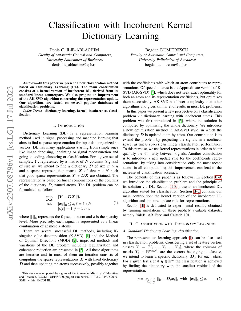 Classification with Incoherent Kernel Dictionary Learning