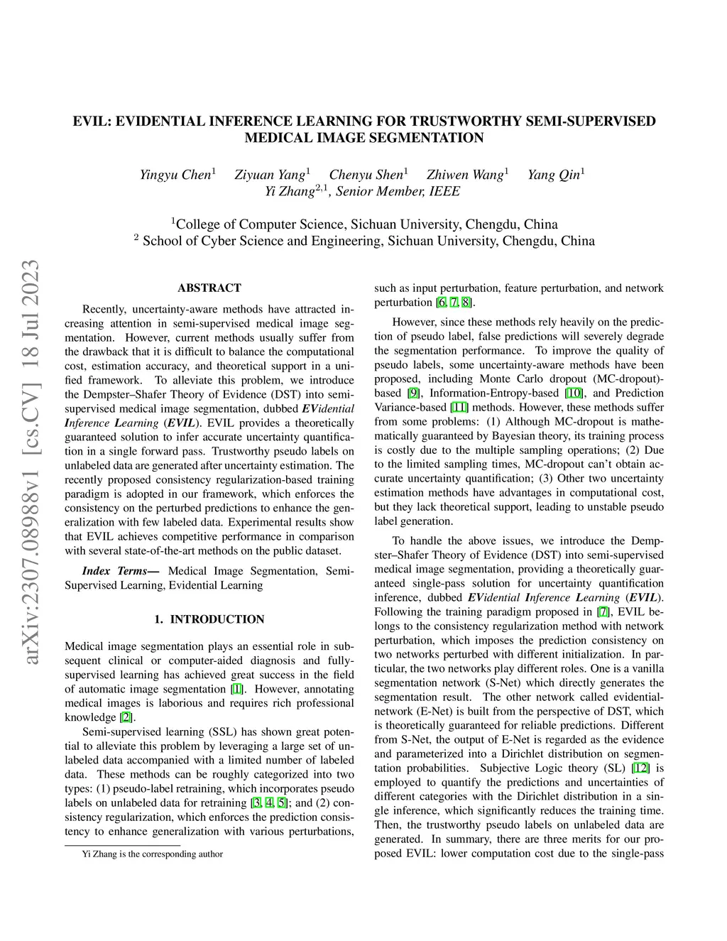 Recently, uncertainty-aware methods have attracted increasing attention in semi-supervised medical image segmentation. However, current methods usually suffer from the drawback that it is difficult to balance the computational cost, estimation accuracy, and theoretical support in a unified framework. To alleviate this problem, we introduce the Dempster-Shafer Theory of Evidence (DST) into semi-supervised medical image segmentation, dubbed Evidential Inference Learning (EVIL). EVIL provides a theoretically guaranteed solution to infer accurate uncertainty quantification in a single forward pass. Trustworthy pseudo labels on unlabeled data are generated after uncertainty estimation. The recently proposed consistency regularization-based training paradigm is adopted in our framework, which enforces the consistency on the perturbed predictions to enhance the generalization with few labeled data. Experimental results show that EVIL achieves competitive performance in comparison with several state-of-the-art methods on the public dataset.