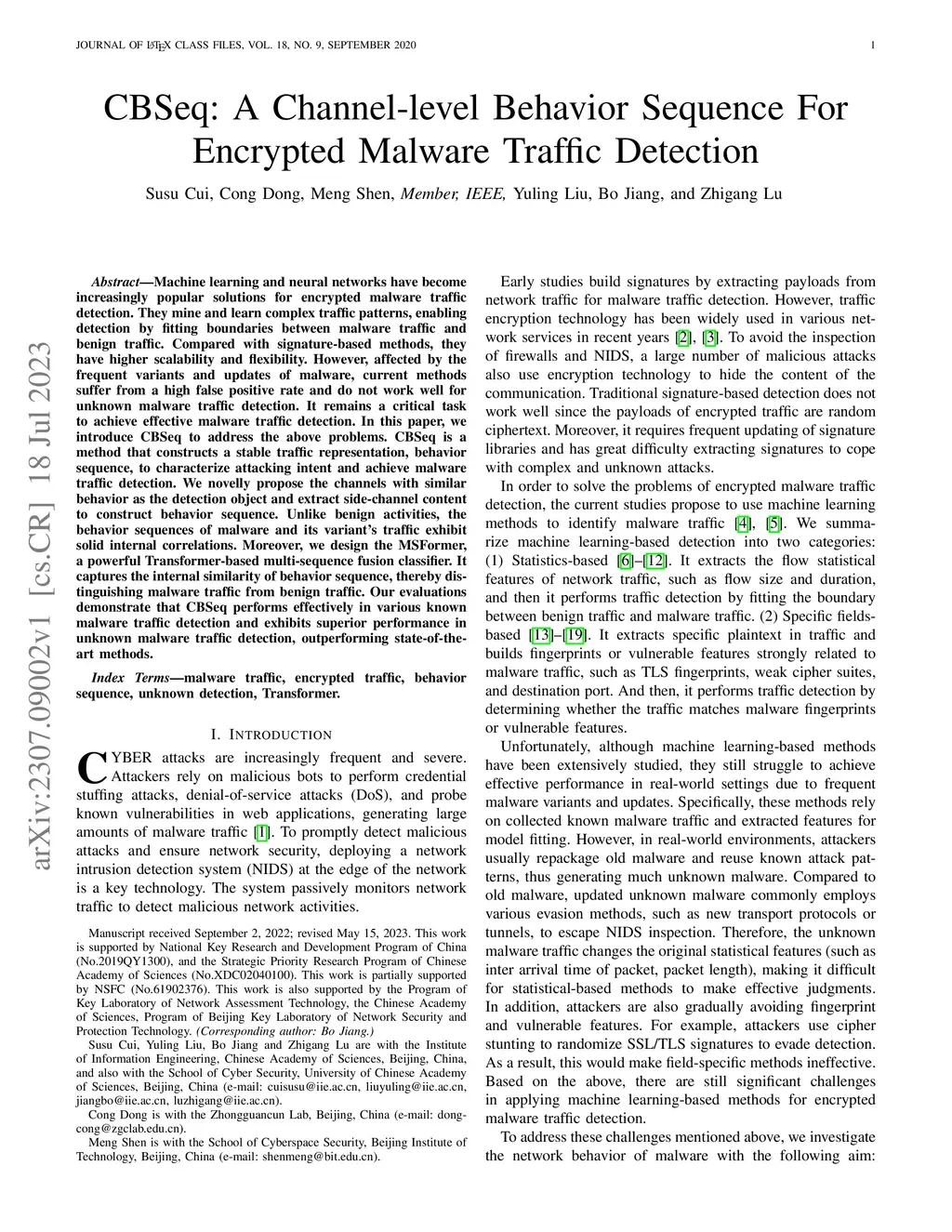 CBSeq: A Channel-level Behavior Sequence For Encrypted Malware Traffic