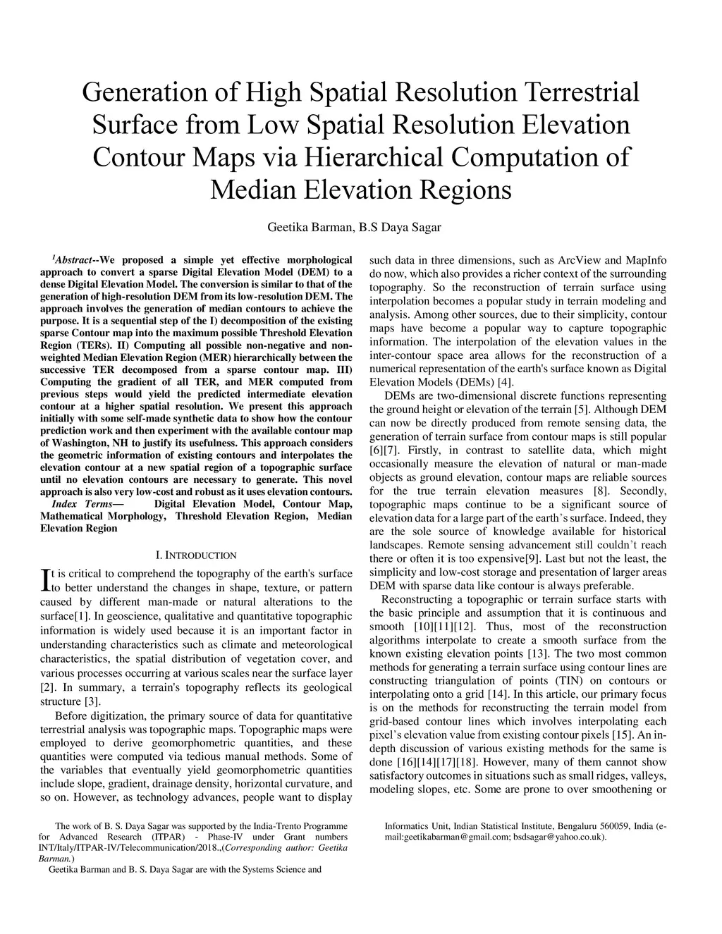 Spatial Resolution Elevation Contour Maps via Hierarchical Computation of