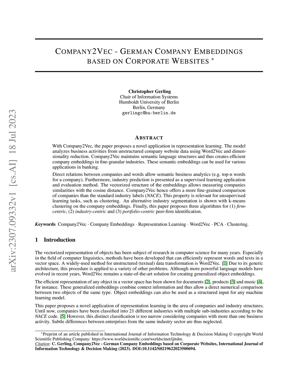 With Company2Vec, the paper proposes a novel application in representation learning. The model analyzes business activities from unstructured company website data using Word2Vec and dimensionality reduction. Company2Vec maintains semantic language structures and thus creates efficient company embeddings in fine-granular industries. These semantic embeddings can be used for various applications in banking. Direct relations between companies and words allow semantic business analytics (e.g. top-n words for a company). Furthermore, industry prediction is presented as a supervised learning application and evaluation method. The vectorized structure of the embeddings allows measuring companies similarities with the cosine distance. Company2Vec hence offers a more fine-grained comparison of companies than the standard industry labels (NACE). This property is relevant for unsupervised learning tasks, such as clustering. An alternative industry segmentation is shown with k-means clustering on the company embeddings. Finally, this paper proposes three algorithms for (1) firm-centric, (2) industry-centric and (3) portfolio-centric peer-firm identification.