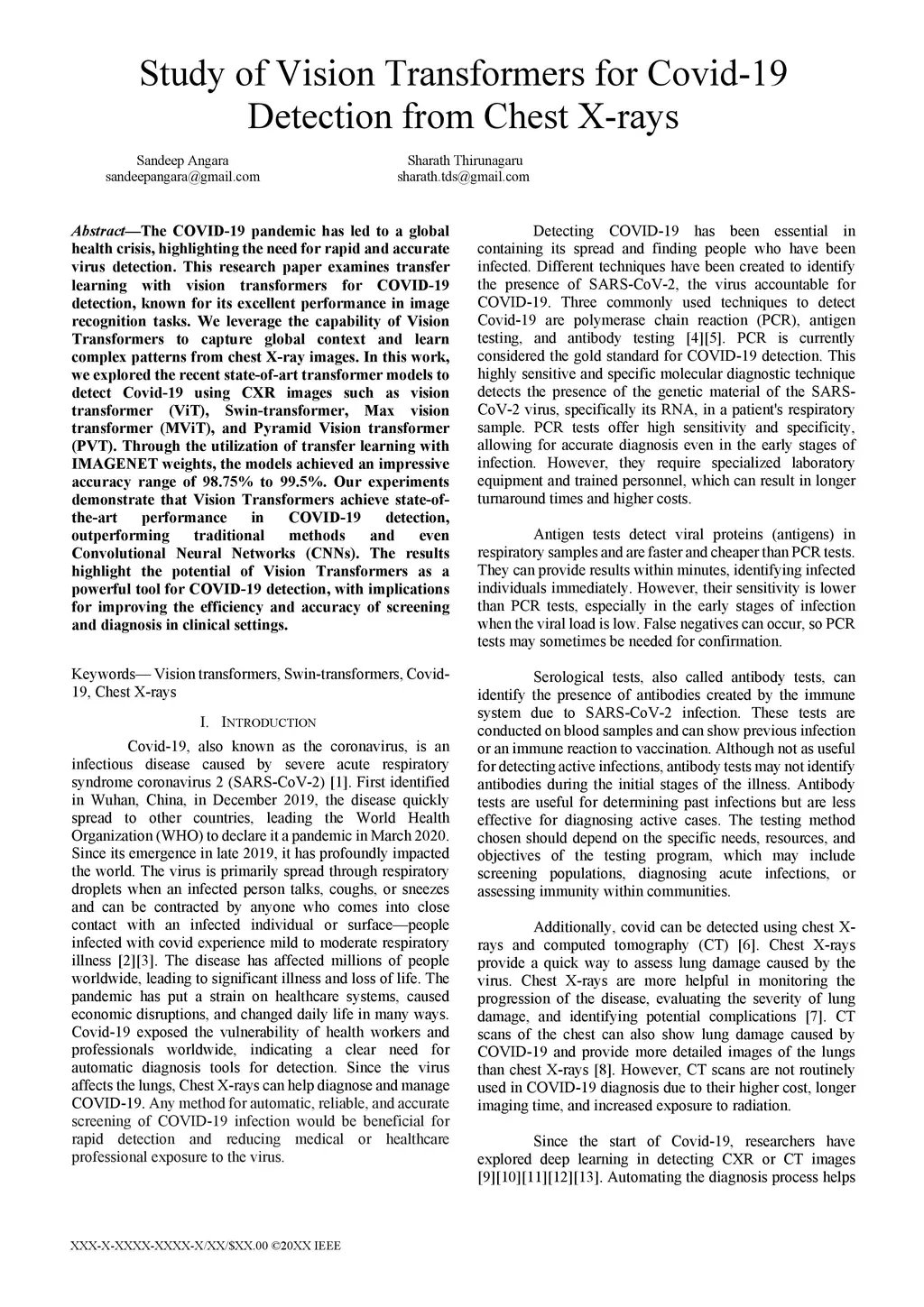 Study of Vision Transformers for Covid-19 Detection from Chest X-rays