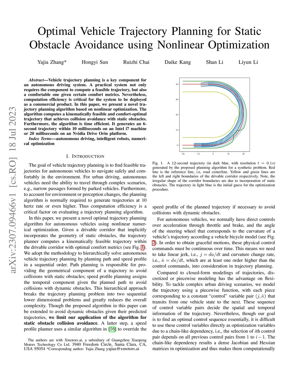 Vehicle trajectory planning is a key component for an autonomous driving system. A practical system not only requires the component to compute a feasible trajectory, but also a comfortable one given certain comfort metrics. Nevertheless, computation efficiency is critical for the system to be deployed as a commercial product. In this paper, we present a novel trajectory planning algorithm based on nonlinear optimization. The algorithm computes a kinematically feasible and comfort-optimal trajectory that achieves collision avoidance with static obstacles. Furthermore, the algorithm is time efficient. It generates an 6-second trajectory within 10 milliseconds on an Intel i7 machine or 20 milliseconds on an Nvidia Drive Orin platform.
