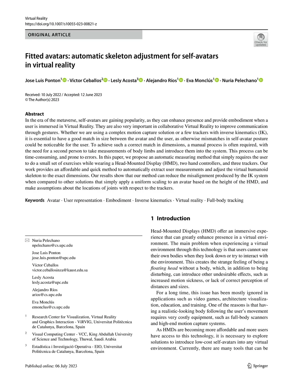 Fitted avatars: automatic skeleton adjustment for self-avatars in