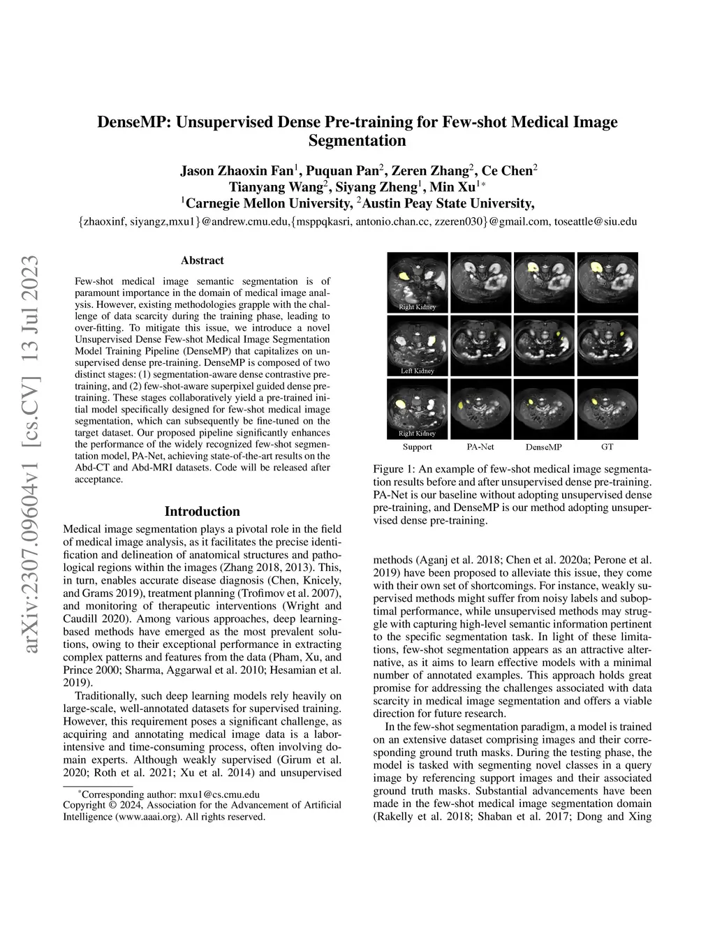 DenseMP: Unsupervised Dense Pre-training for Few-shot Medical Image