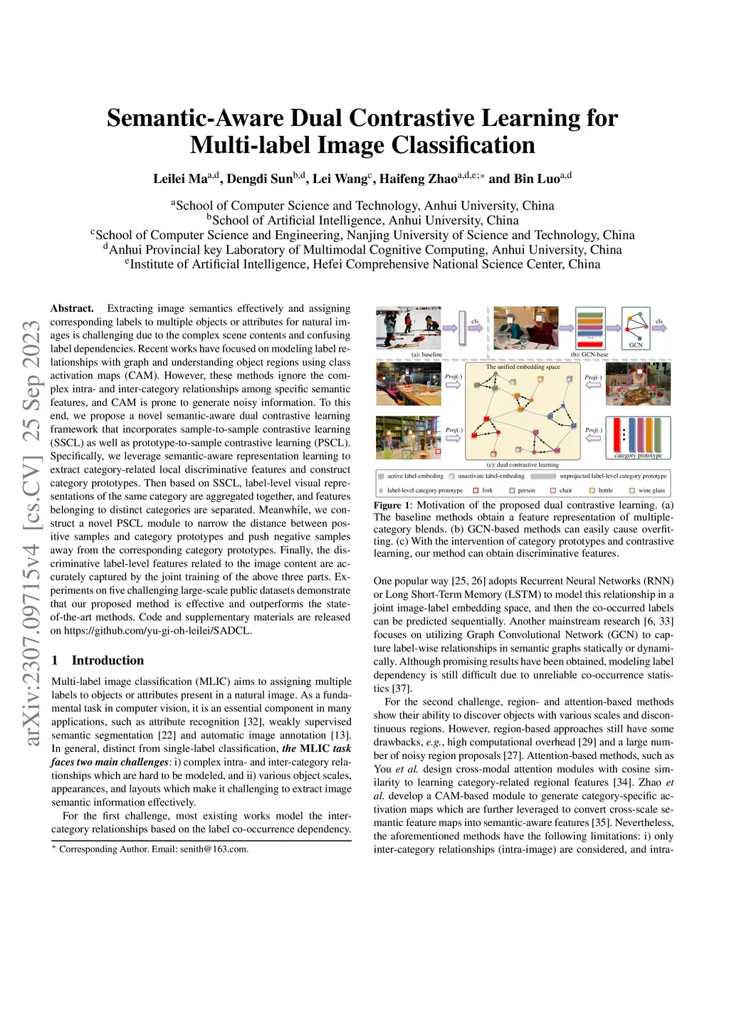 Semantic-Aware Dual Contrastive Learning for Multi-label Image