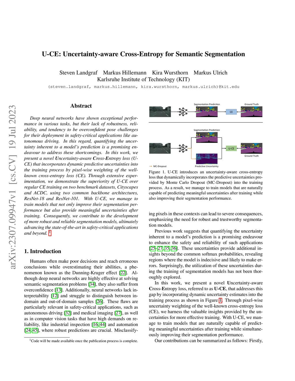 U-CE: Uncertainty-aware Cross-Entropy for Semantic Segmentation