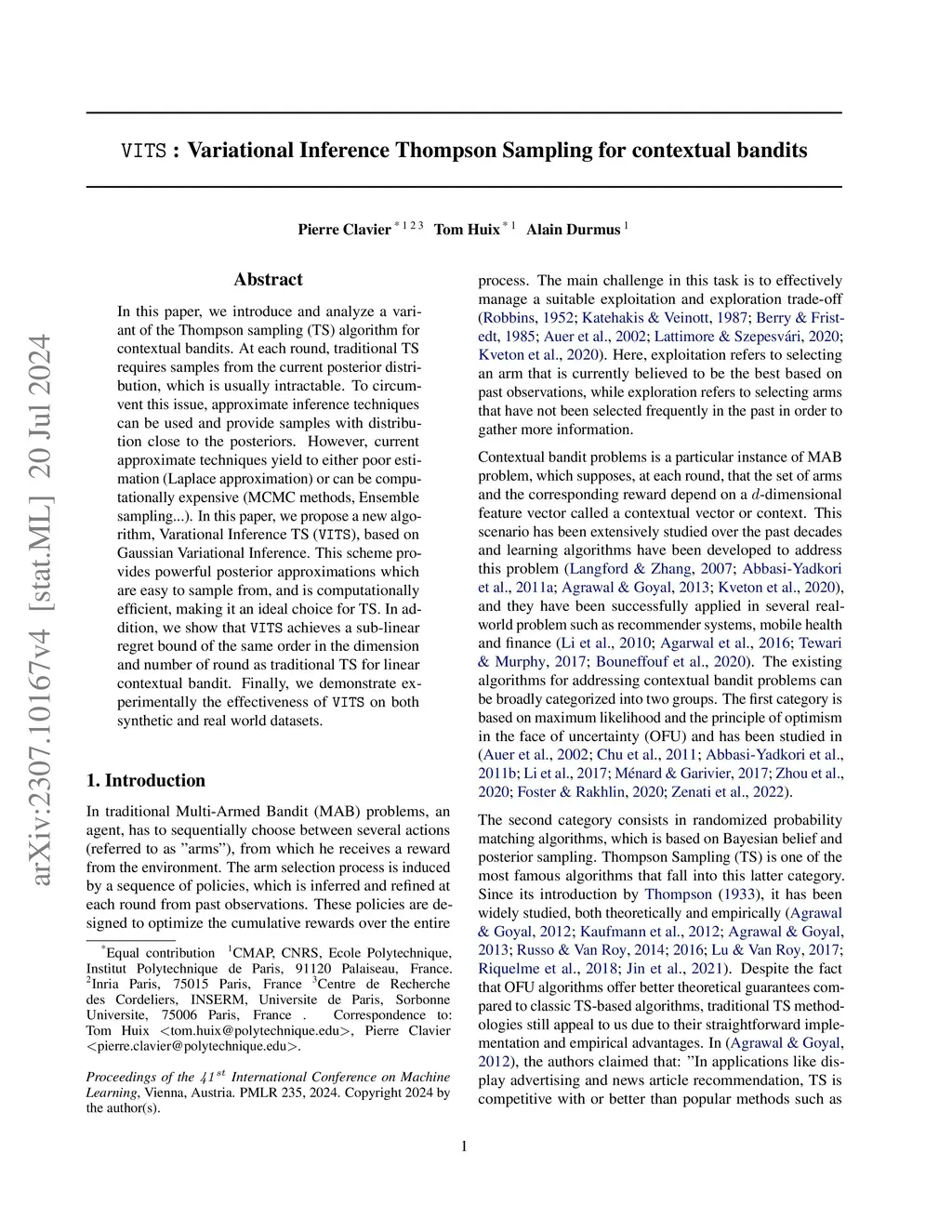 VITS : Variational Inference Thompson Sampling for contextual bandits